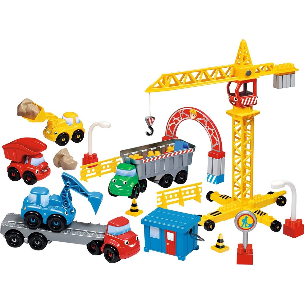 Na staveništi je vždy spousta práce. Velká stavebí sada obsahuje jeřáb, 5 vozidly a spoustou doplňků.