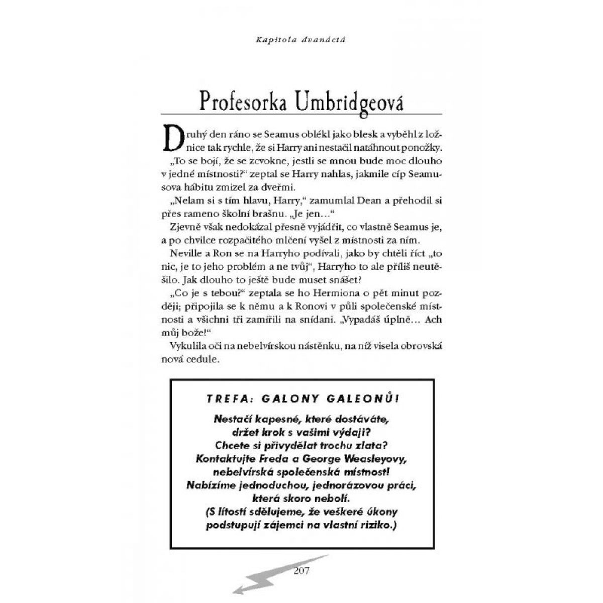 Pátý díl příběhů mladého čarodějnického učně Harryho Pottera a jeho věrných kamarádů Rona a Hermiony. Napětím a nervozitou byly poznamenány už prázdniny a hned od začátku pátého ročníku přichází jeden otřes za druhým: na bradavické škole totiž z vůle Ministerstva kouzel došlo k závažným změnám a atmosféra strachu houstne každým dnem víc a víc. Nerozlučná trojice přátel však přesto dokáže kolem sebe soustředit dost studentů, kteří nebudou chtít se založenýma rukama čekat, až je zlo zahubí. To, co zažijí, už nejsou jen neškodná dobrodružství!