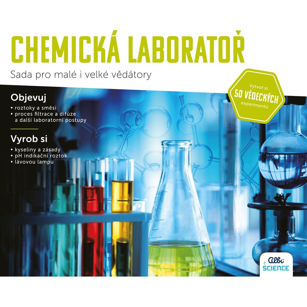 Skvělý začátek pro každého začínajícího chemika! Prozkoumej úžasné kyseliny a zásady, báječné plyny, ohromující kovy a podivuhodnou vodu pomocí skutečných laboratorních technik.