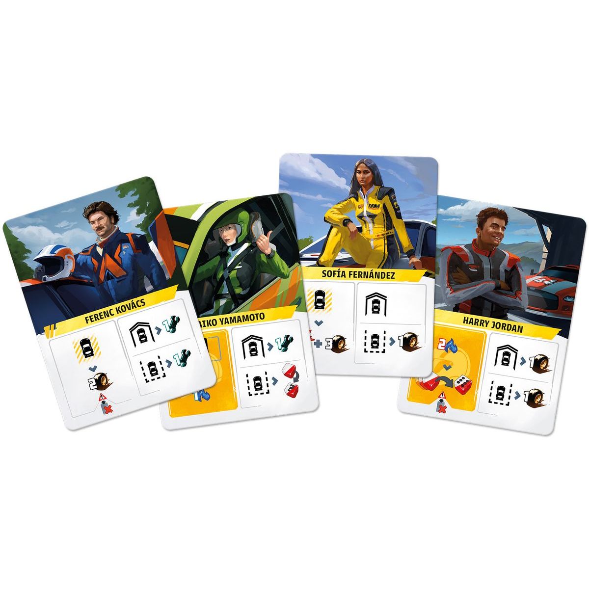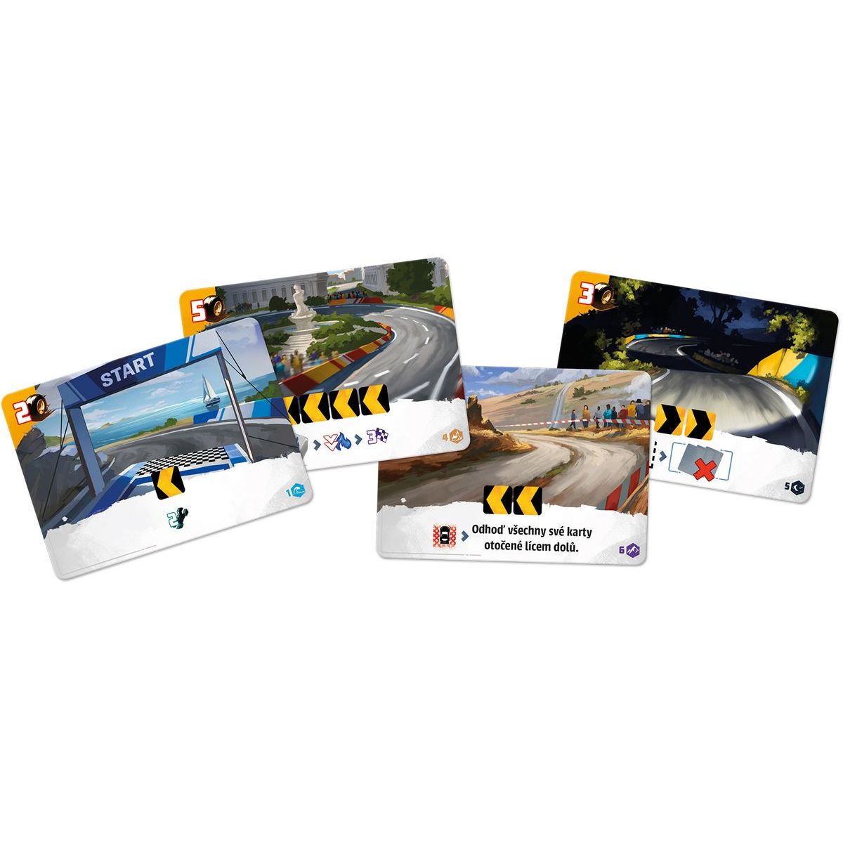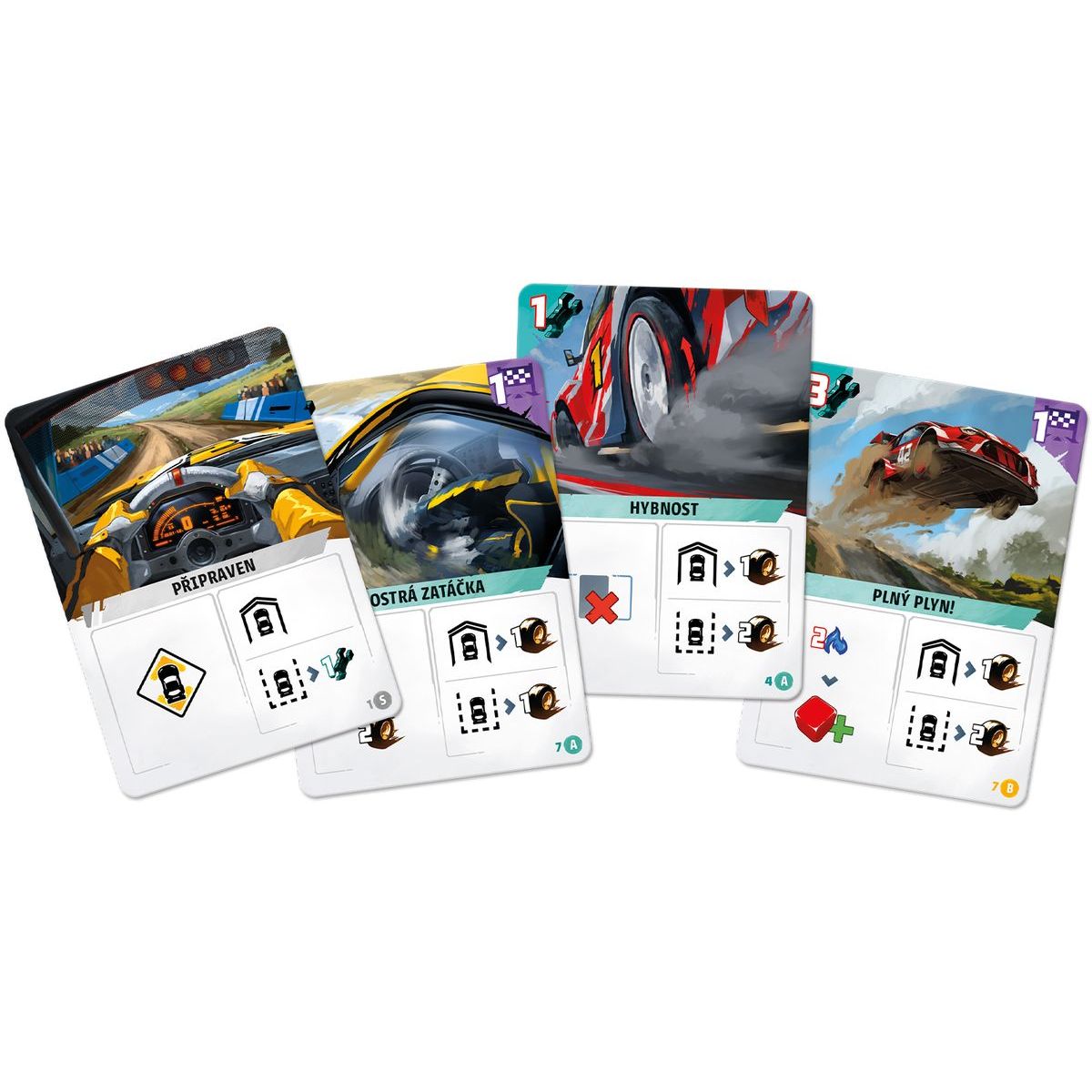 Obsah balení: herní deska, 4 hráčské desky, 4 desky vozidla, 238 karet, 14 žetonů hráče, 3 kostky hráče, 12 kostek poškození, 10 červených kostek, 1 kostka popularity, pravidla