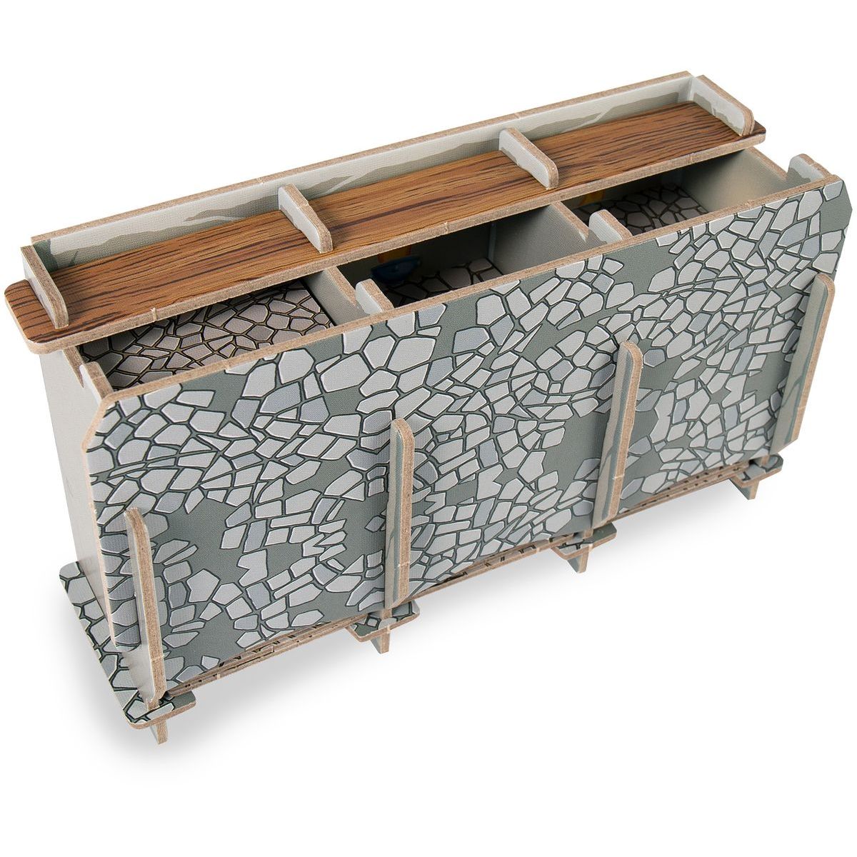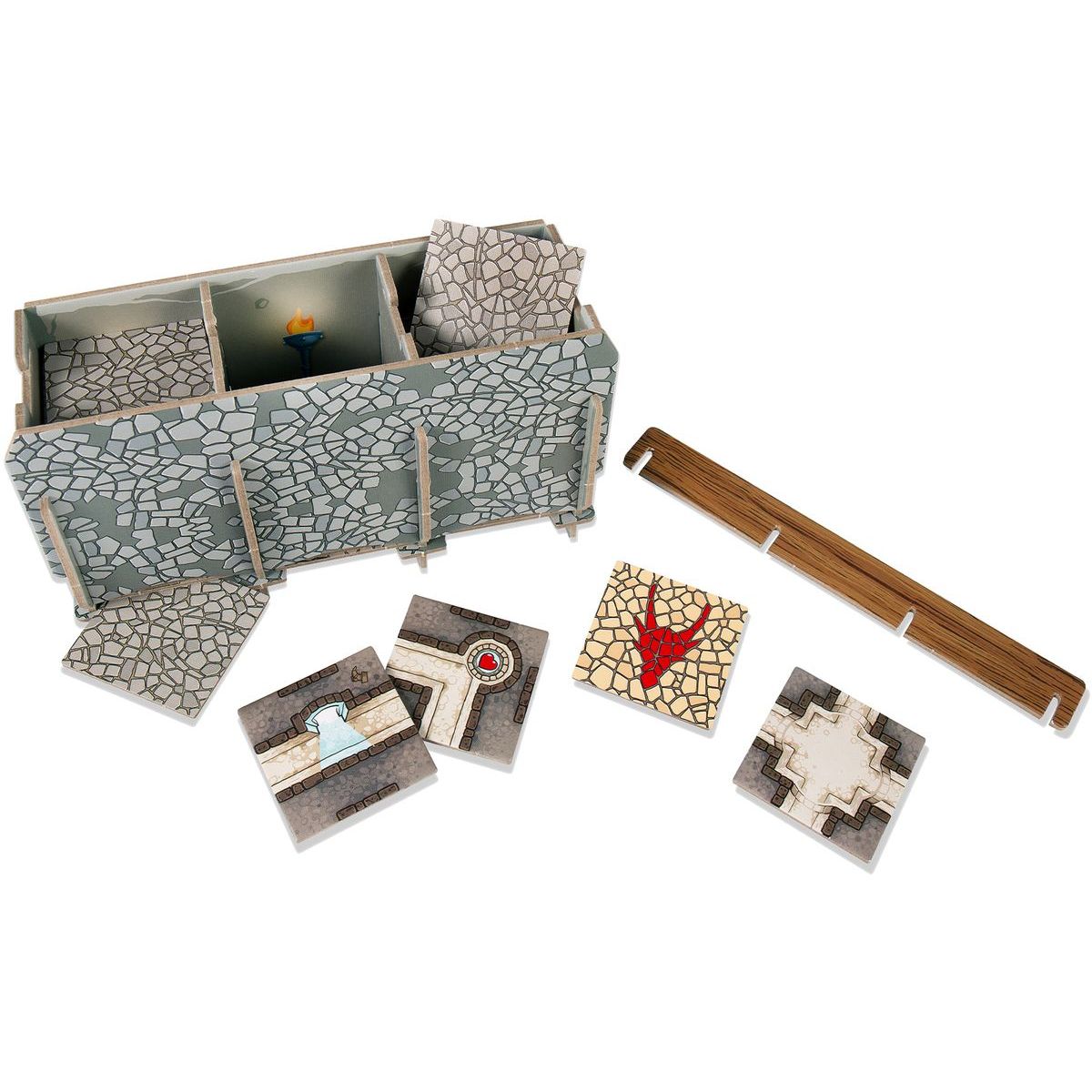 Obsah: 80 destiček, 6 figurek hrdinů, 6 karet hrdinů, 5 desek inventáře, žetony, kostky, kartonová věž, plastový insert, pravidla (CZ/SK/PL/RO)