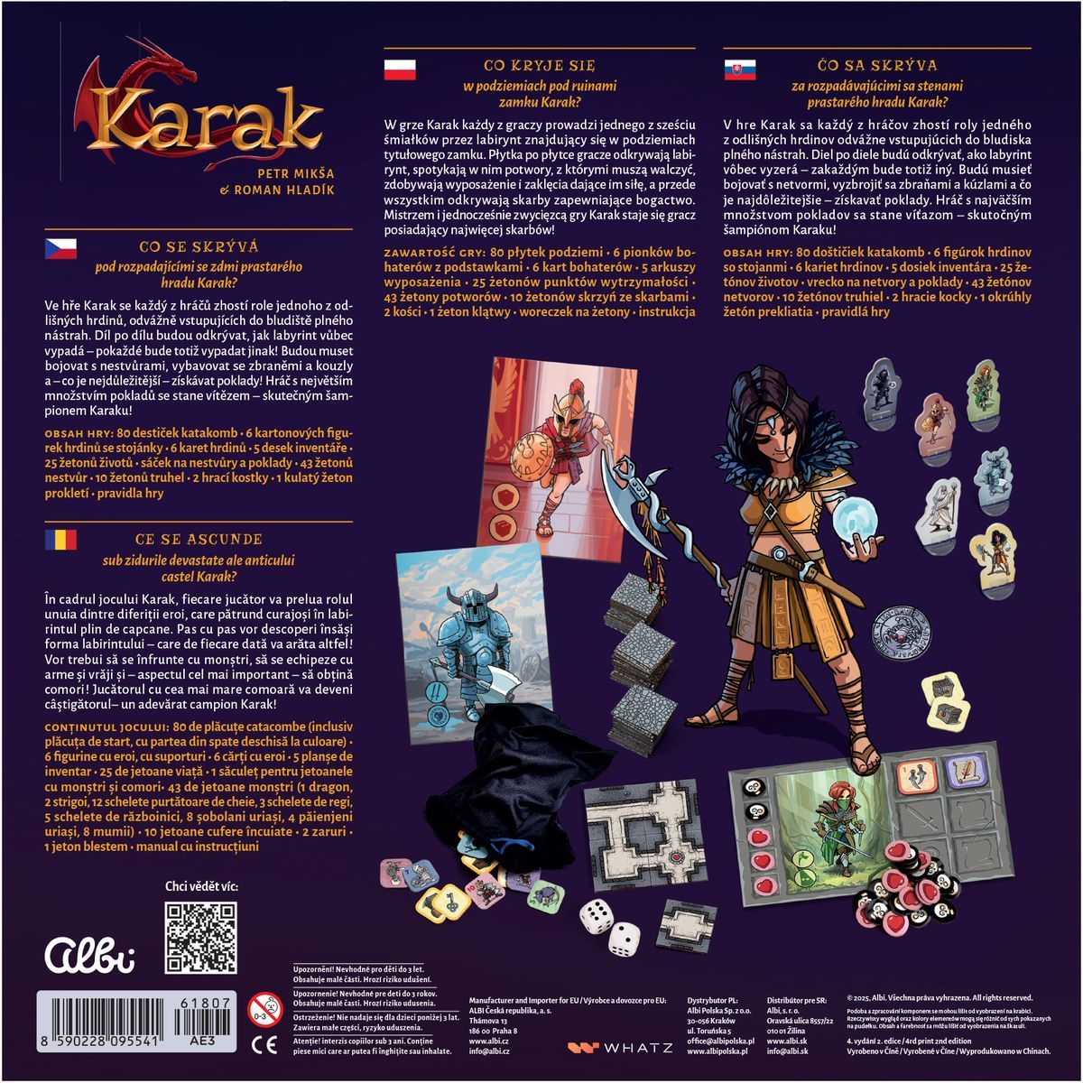 Albi Karak – Druhá edice je modernizované vydání populární rodinné dungeon crawler hry, ve které hráči prozkoumávají katakomby pod hradem Karak, odhalují poklady a utkávají se s nebezpečnými nestvůrami. Každý hráč ovládá jednoho hrdinu s unikátními schopnostmi a strategickým využíváním jeho dovedností se snaží porazit mocného draka, čímž hra končí. O vítězství rozhoduje počet získaných pokladů. Díky jednoduchým pravidlům je hra přístupná již dětem od 7 let.