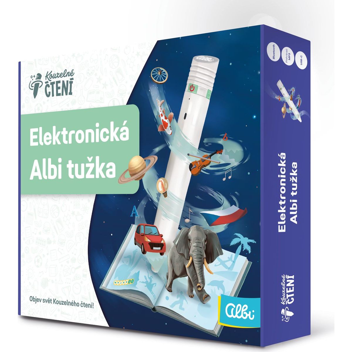 Elektronická Albi tužka 2.0. po čtení knížek z Kouzelného čtení. Elektronická Albi tužka 2.0 disponuje výkonnější baterií, má ergonomický úchop a bezdrátové připojení ke sluchátkům a repráčku.