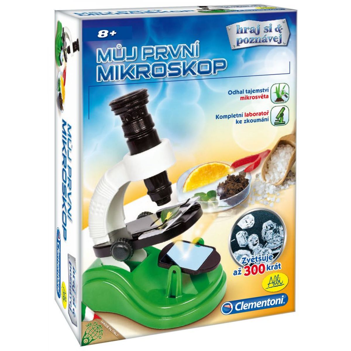 Malý vědátor se dozví zajímavé informace o tom, jak vlastně mikroskop funguje. Bude moci pozorovat lidský vlas, krystaly soli či epidermální buňky cibule. Mikroskop je jednoduchý na sestavení. Sada obsahuje barevný manuál s ilustracemi a podrobným návodem na provádění jednotlivých experimentů. Výborná hračka která zaujme snad každé dítě. Zvětšuje až 300x.