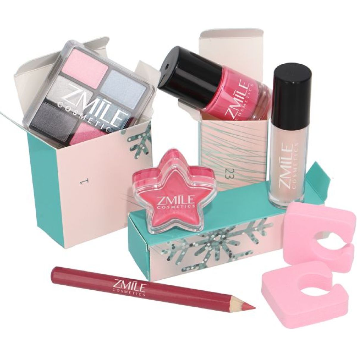 Obsah: lesky na rty, oční stíny, konturovací tužky, ořezávátko, separátor na nehty, pilník, aplikátory očních stínů, aplikátory, štěteček, laky na nehty, samolepky na nehty