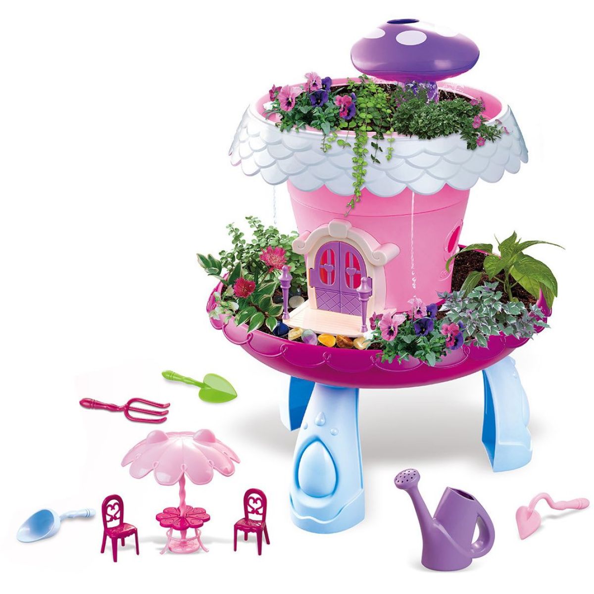 Obsahuje vše potřebné k vytvoření vlastní mini zahrádky – květináče, zásobník na vodu, zavlažovací prvek ve tvaru houby, zahradní náčiní, semínka a další doplňky.