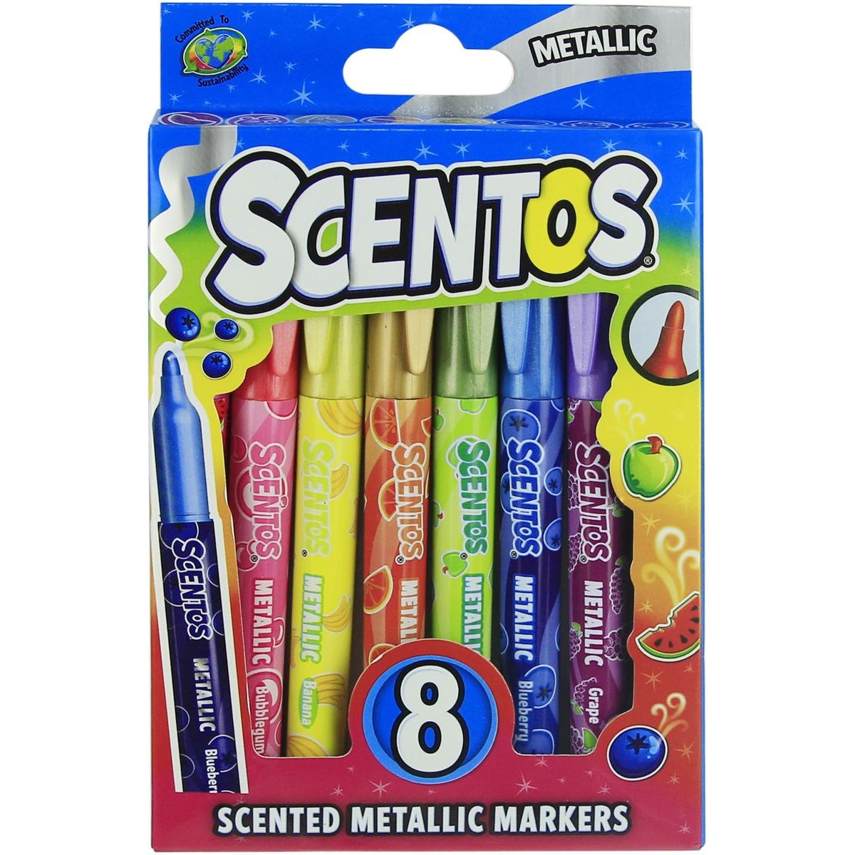 Přidejte svým výtvorům lesk a vůni! Sada 8 metalických fixů Scentos nabízí zářivé, třpytivé barvy s jedinečnou ovocnou vůní. Ideální pro ozdobné psaní, kreslení i tvoření na tmavý i světlý papír. Vhodné pro děti i kreativní dospělé. Netoxické a bezpečné pro děti, perfektní pro deníky, přáníčka a DIY projekty.