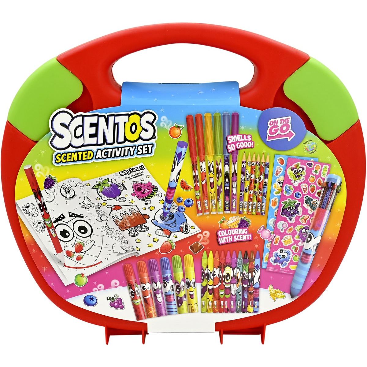 Vše, co malé kreativce potřebují, mají nyní na dosah ruky! Praktický Scentos kufřík plný voňavých fixů, pastelek, voskovek, omalovánek a dalších tvořivých pomůcek. Ideální pro cesty, výlety nebo chvíle, kdy je potřeba zabavit děti kdekoliv a kdykoliv. Přenosný kufřík s úložným prostorem obsahuje voňavé psací potřeby a kreativní aktivity. Skvělé na cesty, do školy i na doma. Podporuje kreativitu a jemnou motoriku. Netoxické a bezpečné pro děti.
