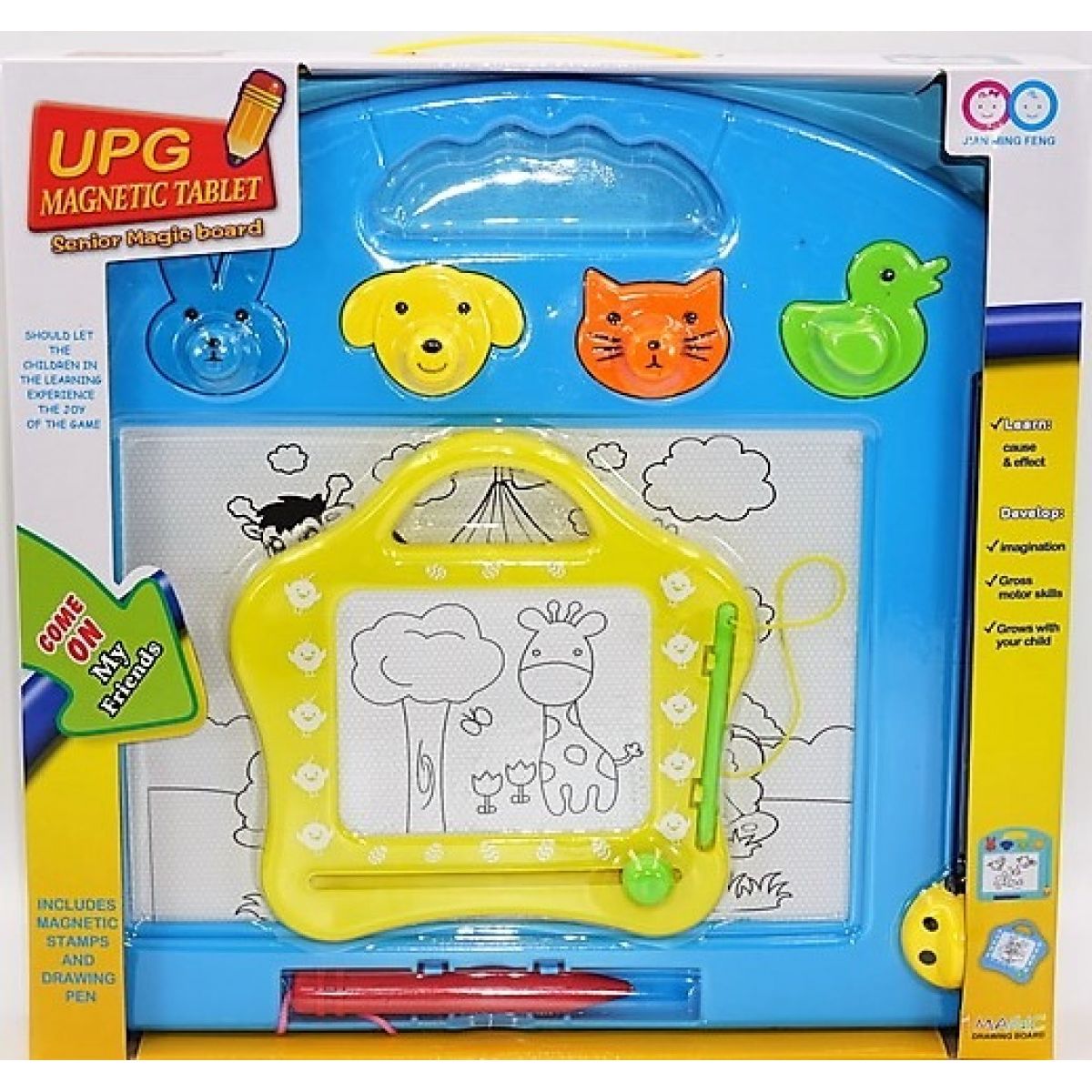 Kreativní pomůcka pro kreslení, psaní zpráv a hraní her se magnetickou tužkou a s razítky.