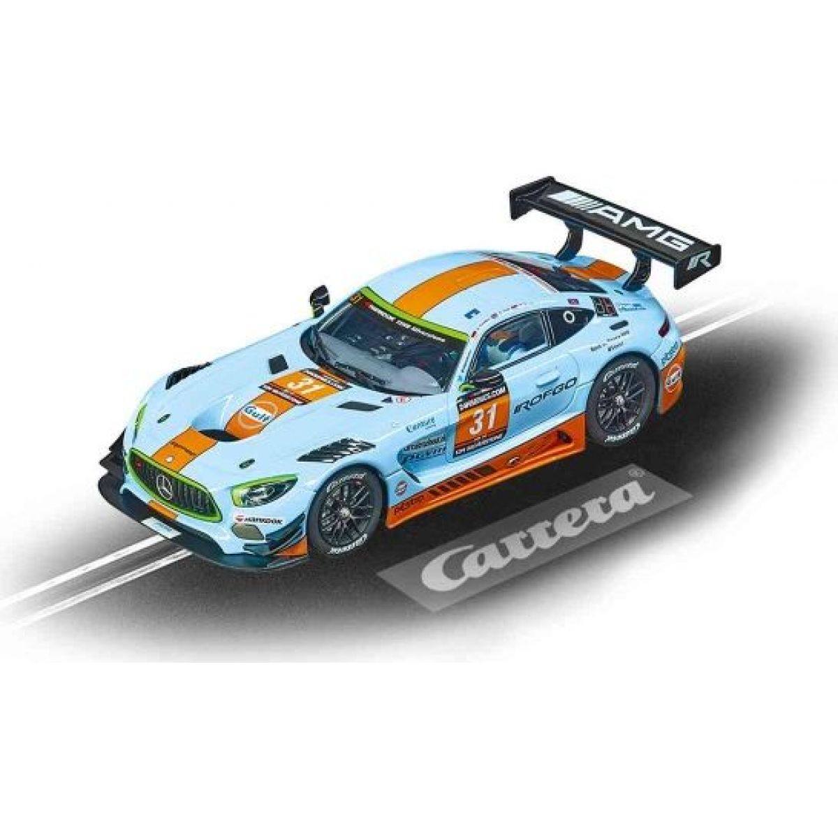 Autíčko Carrera D132 - 30870 Mercedes-AMG GT3 k autodráhám Digital. Součástí auta jsou dvojité kontaktní kartáčky, magnet a vodící lišta. Funkční přední a zadní světla.