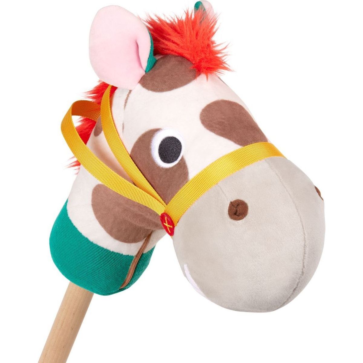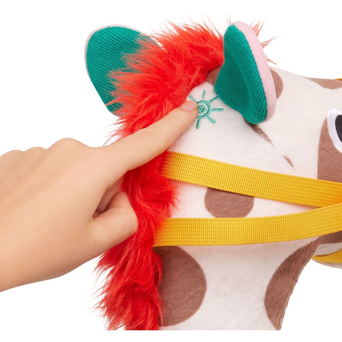 Plyšový koník nabízí nejen hebkou hlavu z různých senzorických materiálů, ale také interaktivní tlačítko, které přehrává realistické zvuky klapotu kopyt a koňského řehtání. Díky pogumované spodní části nezanechává škrábance na podlaze a je ideální pro rozvoj hrubé motoriky a koordinace pohybů u dětí.