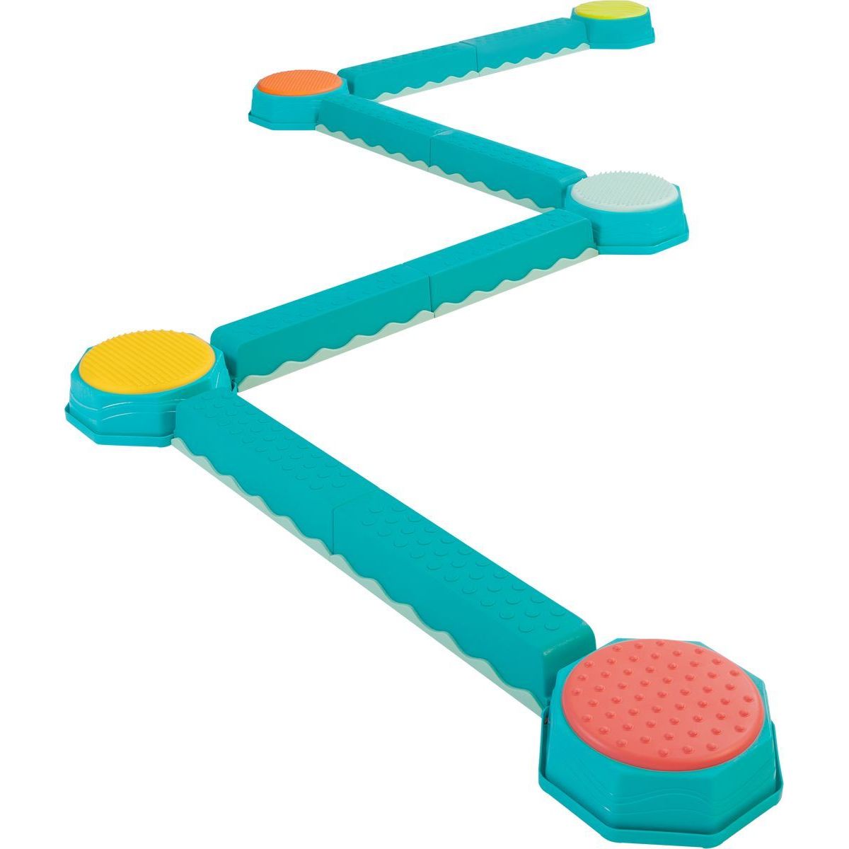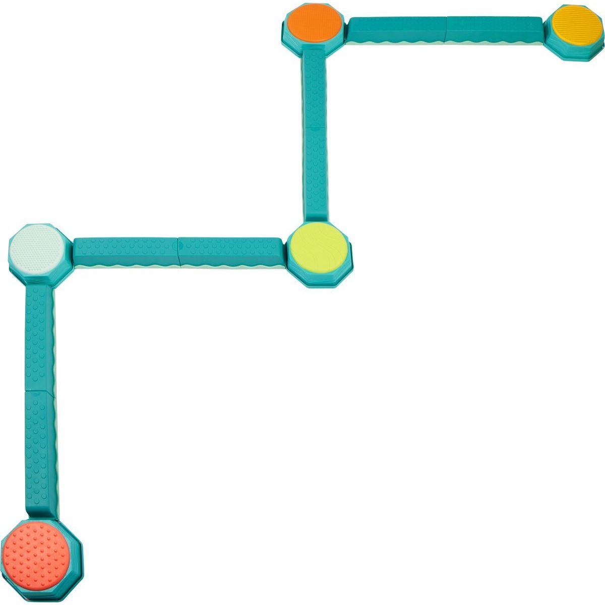 B-Toys Překážková dráha se stupínky Balance & Build je komplexní motorická sada navržená pro podporu fyzického rozvoje dětí. Kombinace 8 rovných překážek a 5 kulatých stupínků umožňuje vytvářet rozmanité trasy zaměřené na zlepšení rovnováhy, koordinace a prostorové orientace. Texturované povrchy stupínků přinášejí senzorický podnět a podporují stabilitu při chůzi.