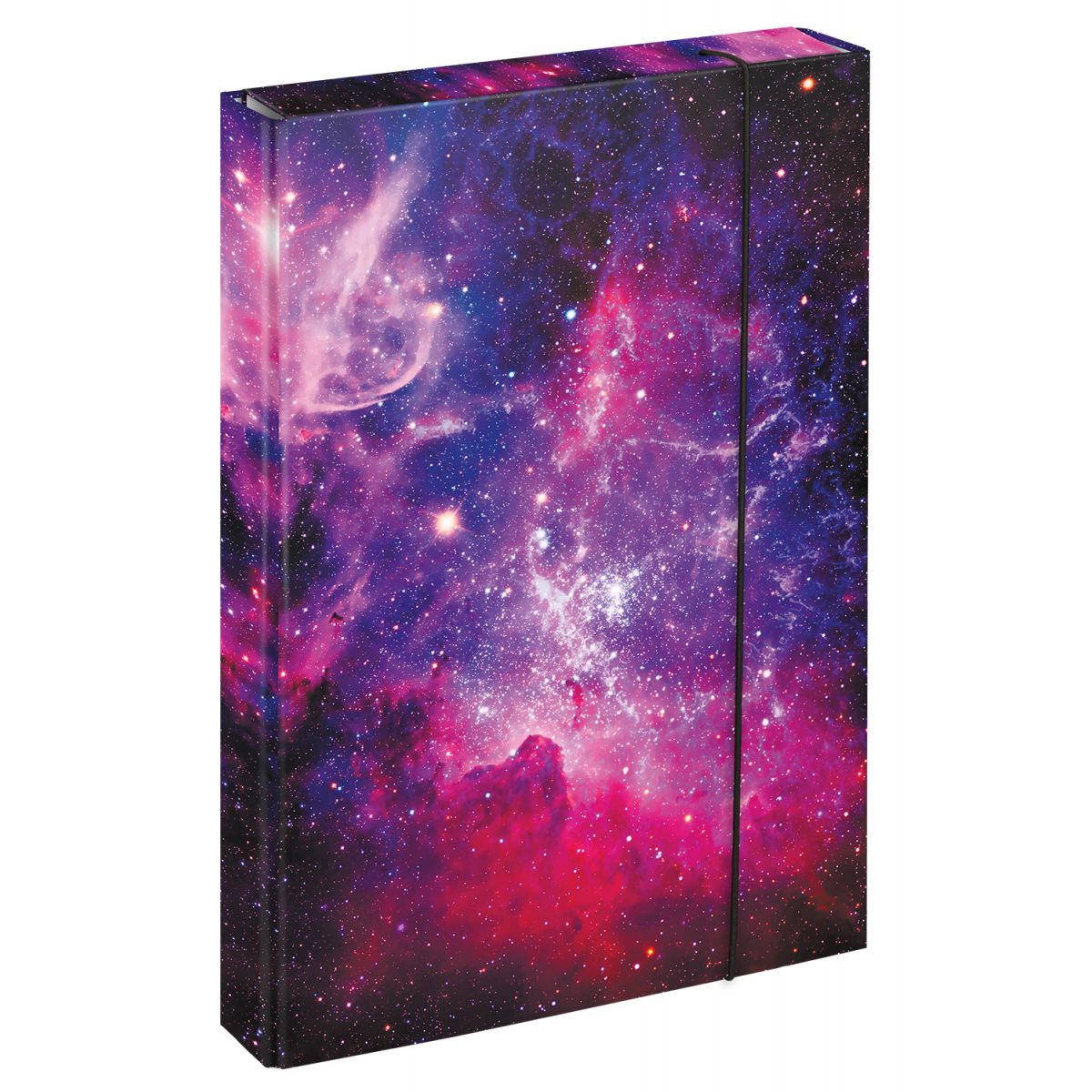 Fialové desky formátu A4 s motivem hvězdné oblohy Galaxy.