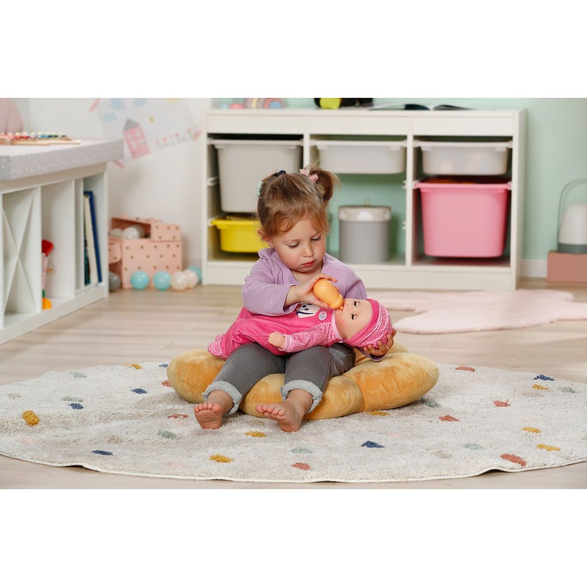 Součástí balení je také růžová lahvička – vše perfektně padne díky standardní velikosti doplňků BABY born 36 cm.