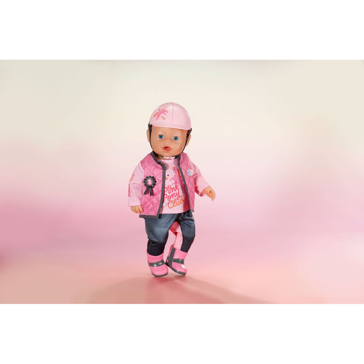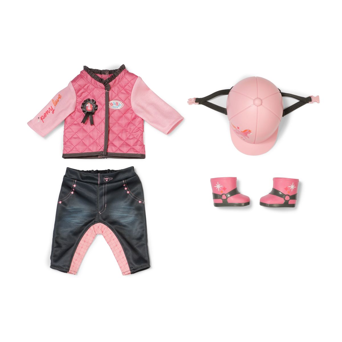 Každý výlet ke koním se s touto růžovo-šedou jezdeckou soupravou pro panenky BABY born promění v nezapomenutelné dobrodružství.