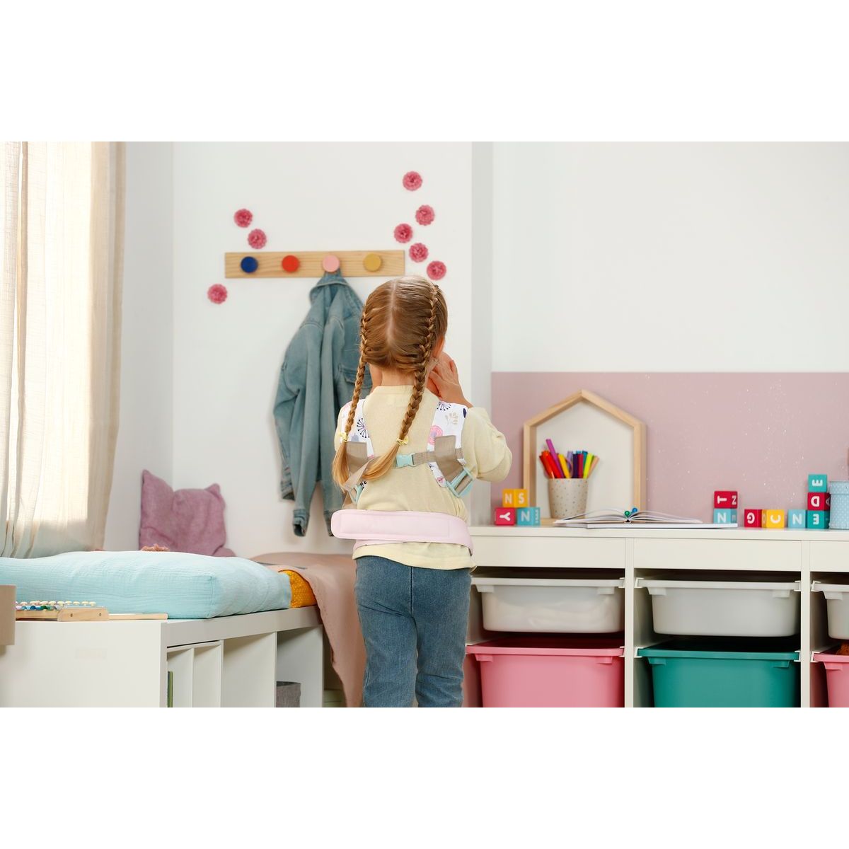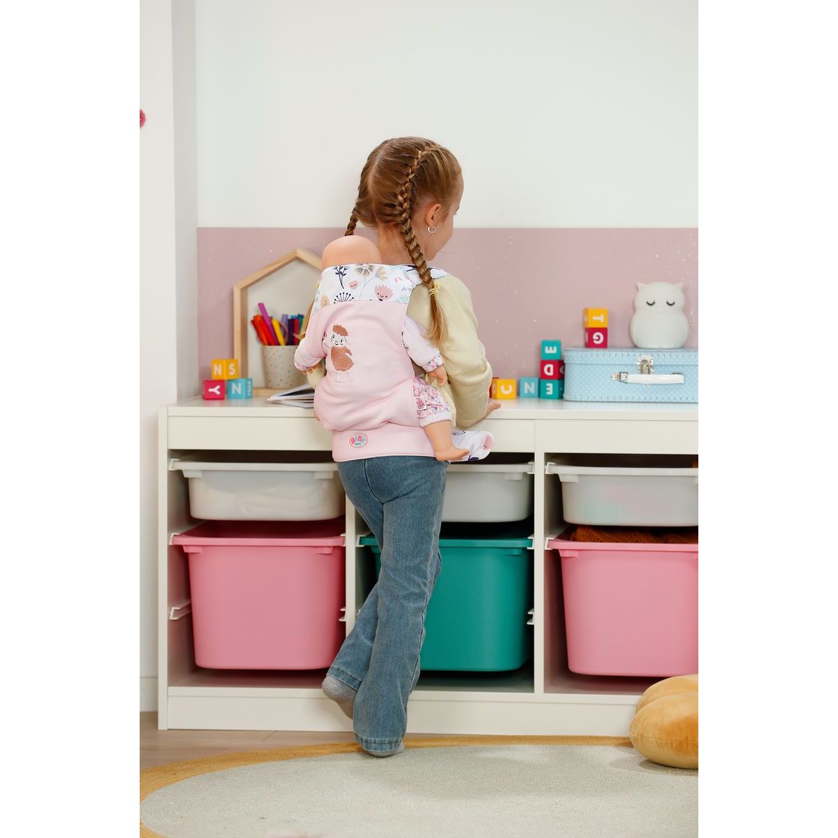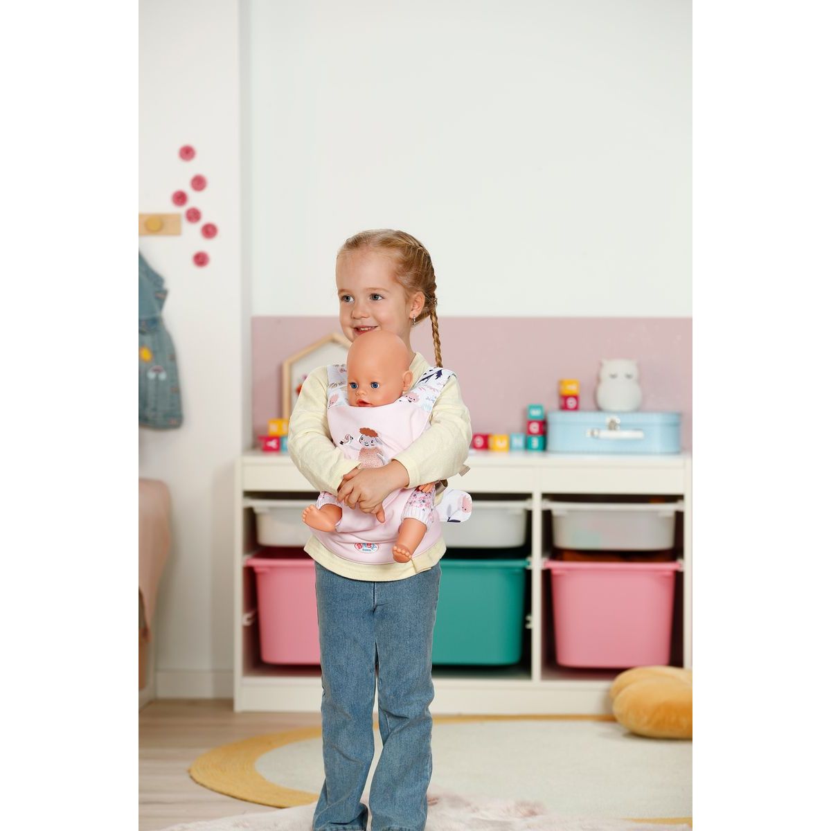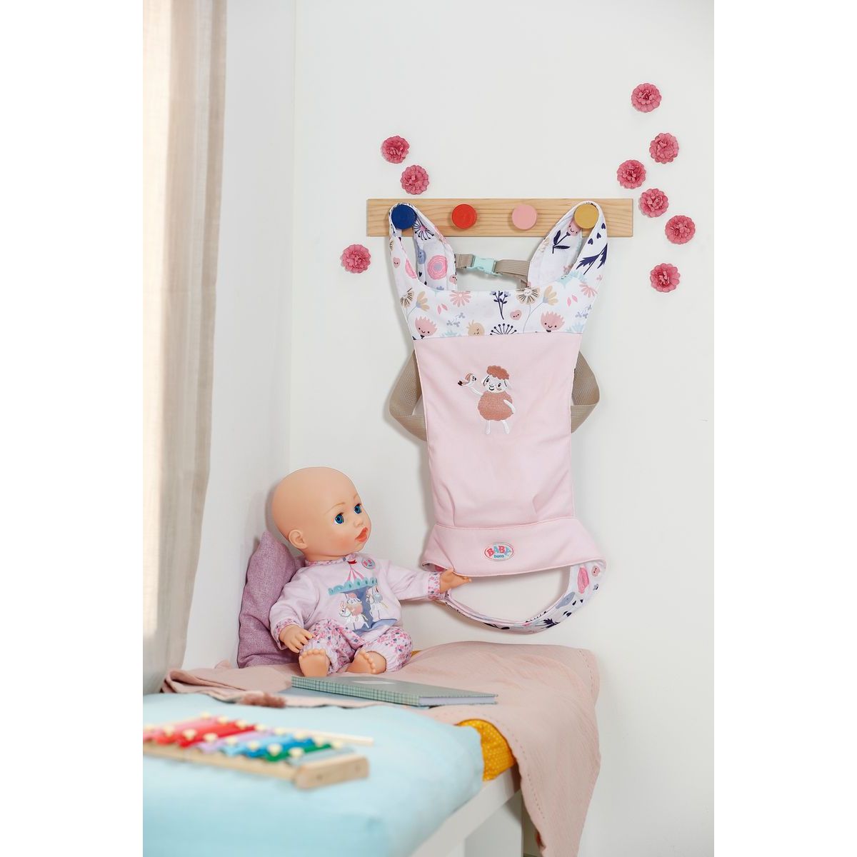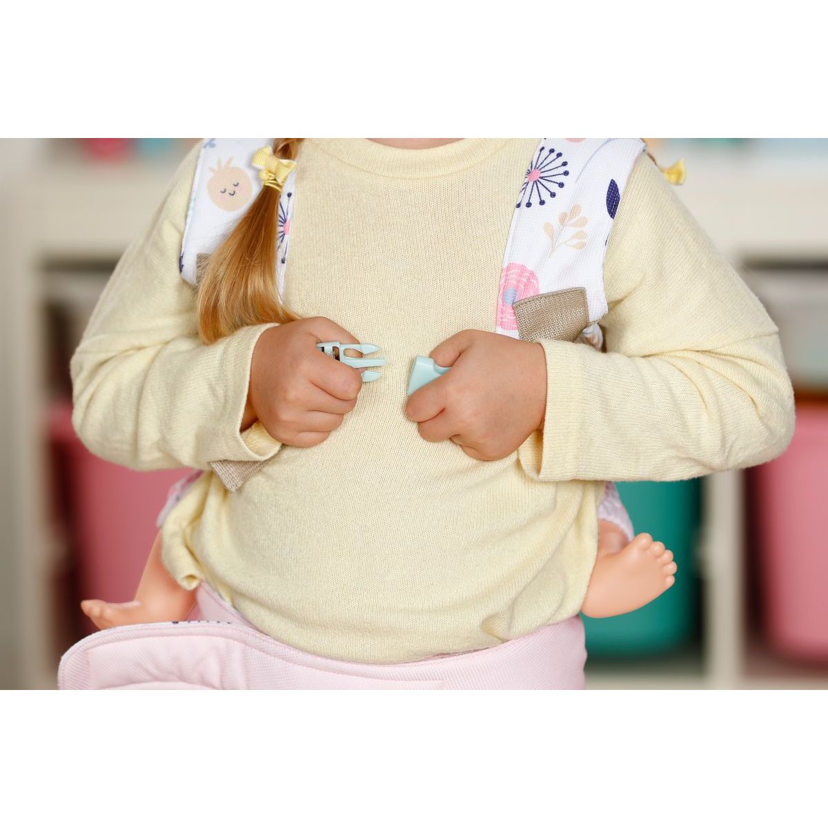 Díky nastavitelnému popruhu je vhodná pro různé velikosti panenek a umožňuje dvě možnosti nošení – panenku můžete mít otočenou směrem dopředu nebo k sobě jako skutečný rodič.