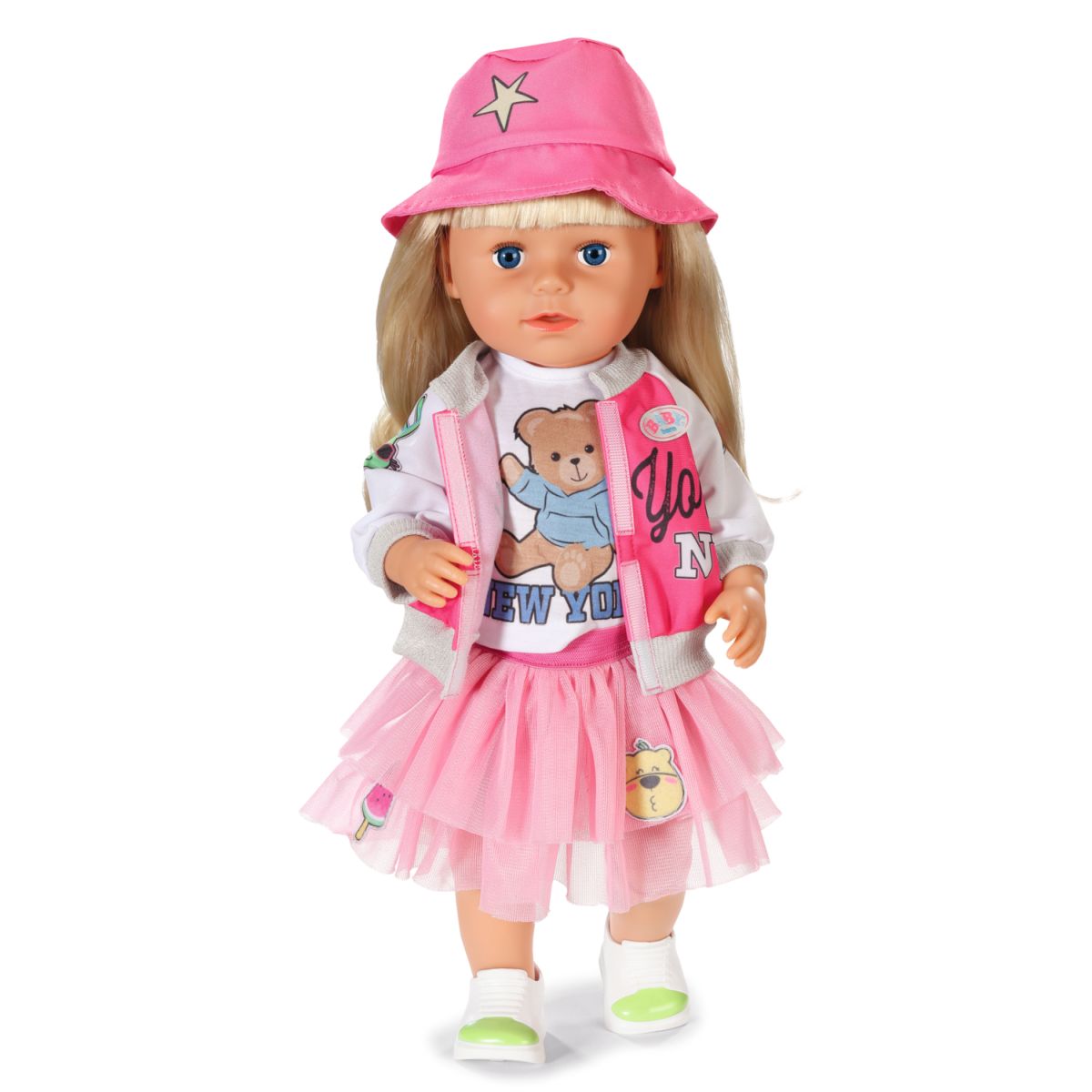 BABY born cestovní outfit pro panenku představuje kompletní sadu oblečení a doplňků pro malé cestovatelky. Stylová bunda, tričko, tylová sukně, čepice a boty tvoří dokonale sladěný celek, který doplňuje kufr a cestovní pas. Oblečení je navrženo pro panenky BABY born o velikosti 43 cm a je vyrobeno z kvalitních materiálů, které zaručují dlouhou životnost a podporují kreativní hraní. Tento set rozšiřuje možnosti hry a podněcuje fantazii dětí.
