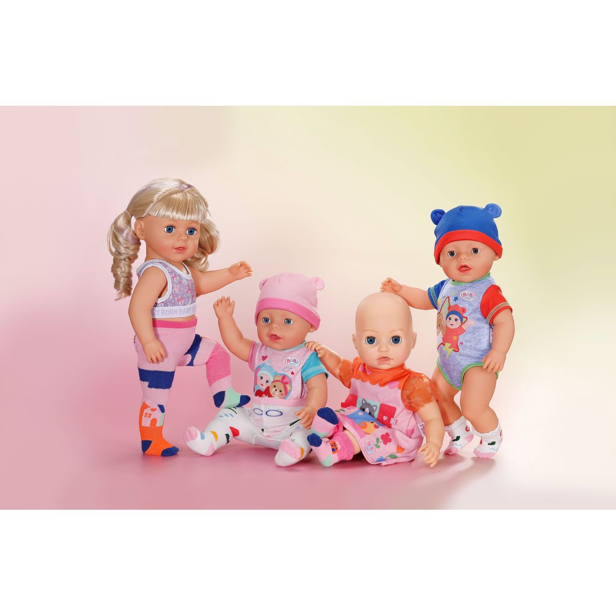 Dopřejte panenkám nový rozměr stylu s touto sadou punčocháčů a ponožek BABY born, která nabízí dvě originální varianty barevných vzorů.