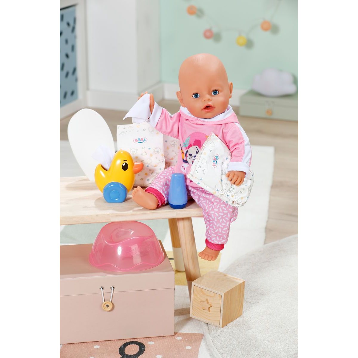 Sada BABY born s nočníkem přináší vše, co malé panenky potřebují pro péči o hygienu a hraní.