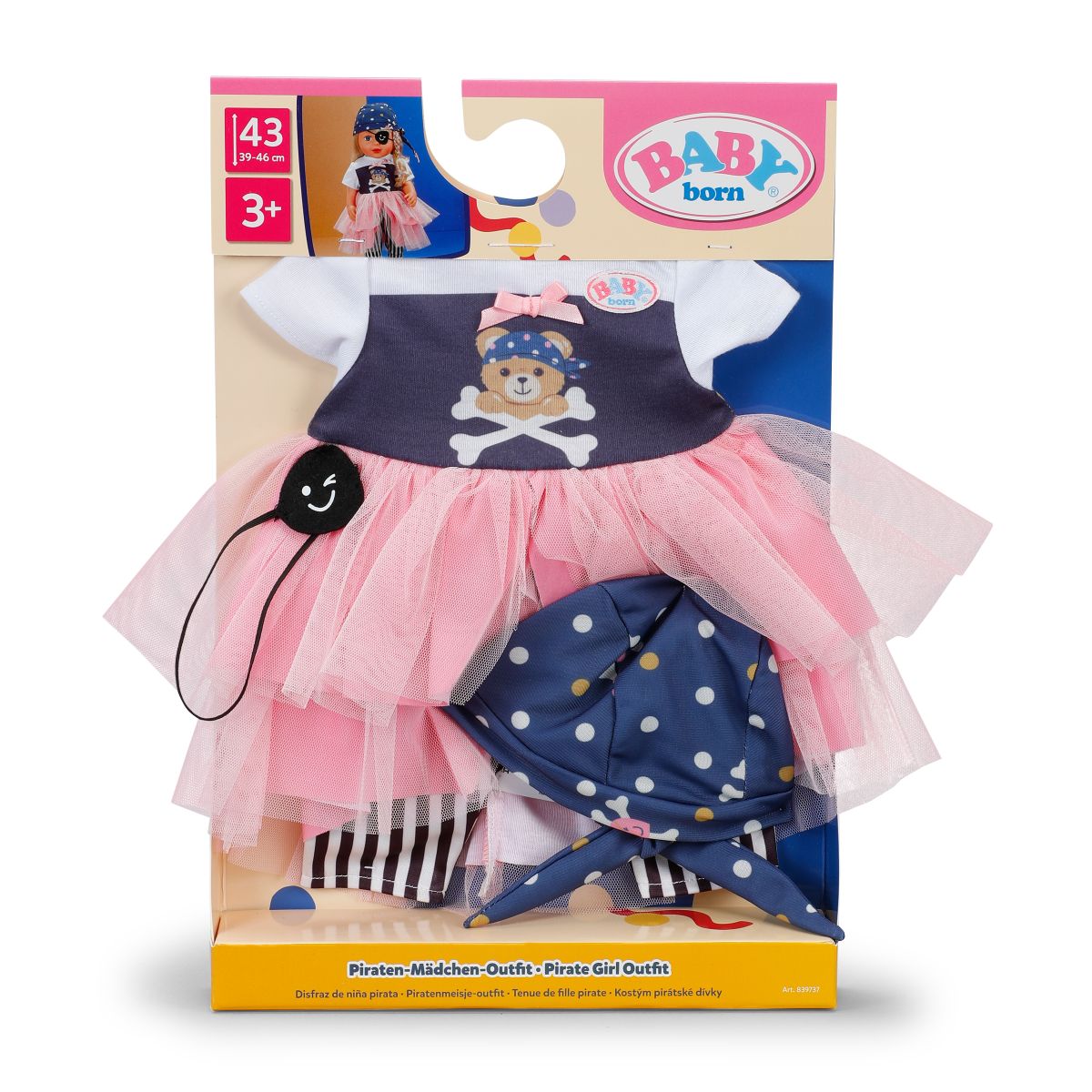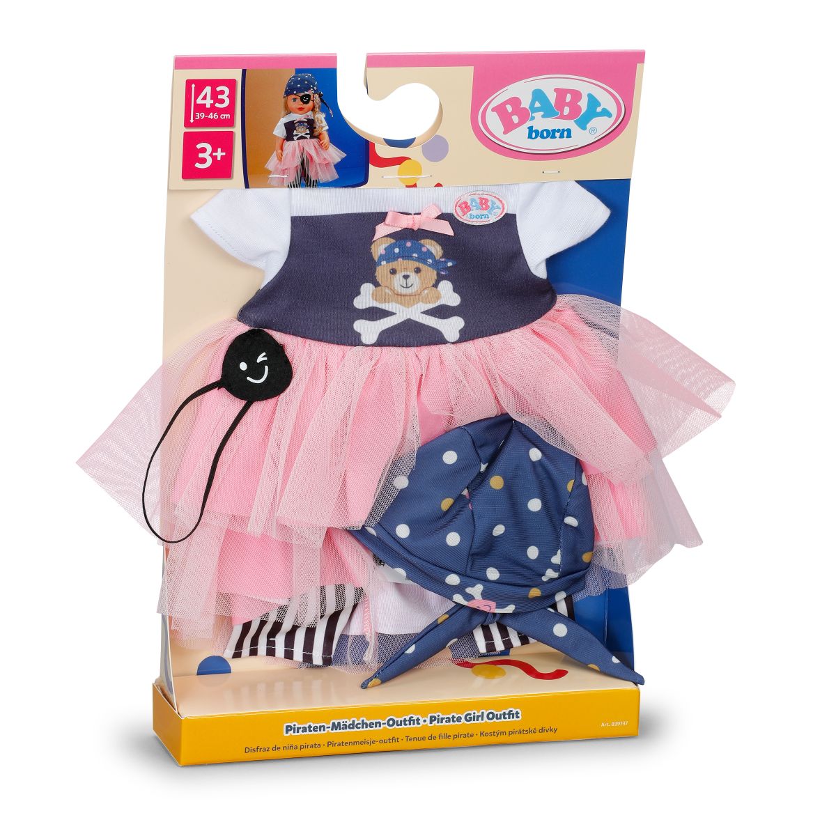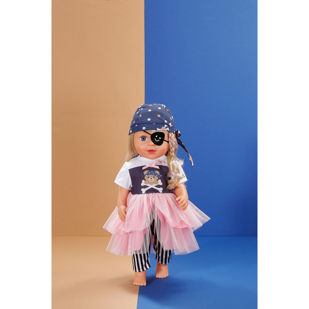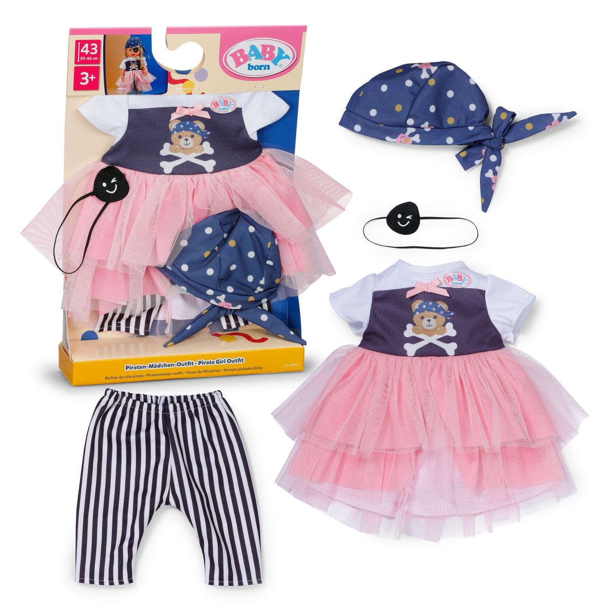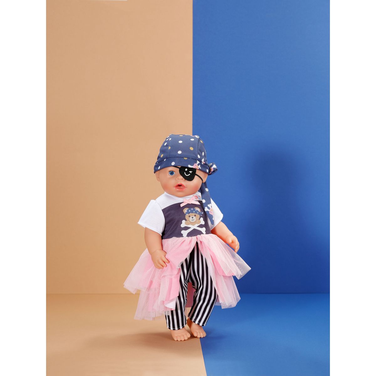 Připravte se na nezapomenutelné chvíle plné zábavy s tímto stylovým pirátským outfitem pro panenky BABY born o velikosti 43 cm.