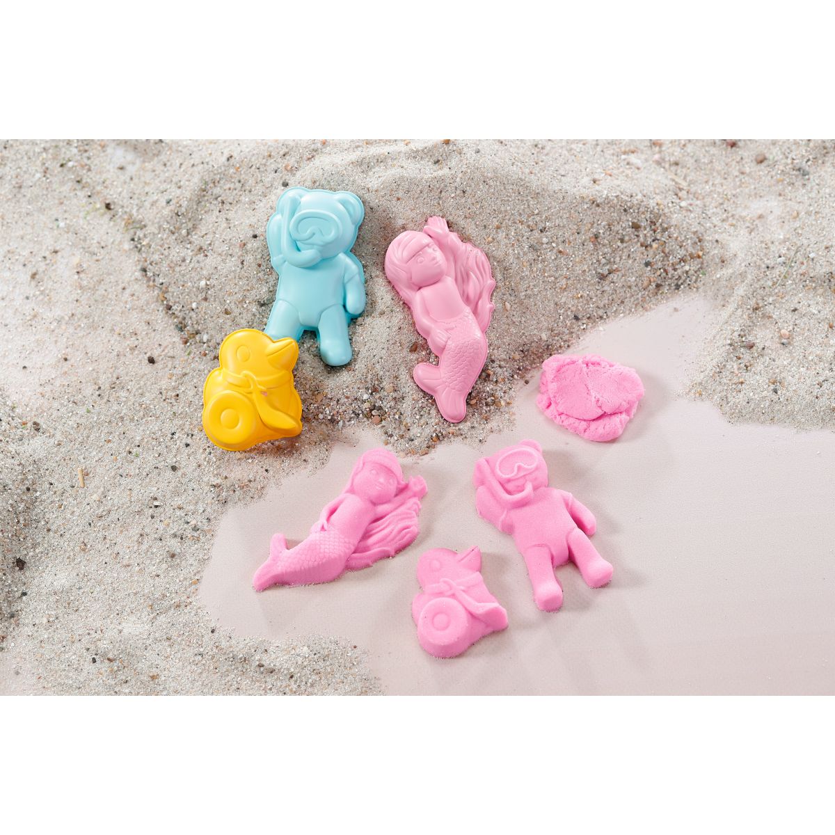 Barevné nacvakávací ozdoby, amulet a formičky na písek ve tvaru kačenky Berty, medvídka Teddyho a mořské panny Carly doplní zábavu a inspirují k tvoření příběhů. Rukojeť kbelíčku lze navíc ozdobit drahokamovými ozdobami pro ještě více fantazie.