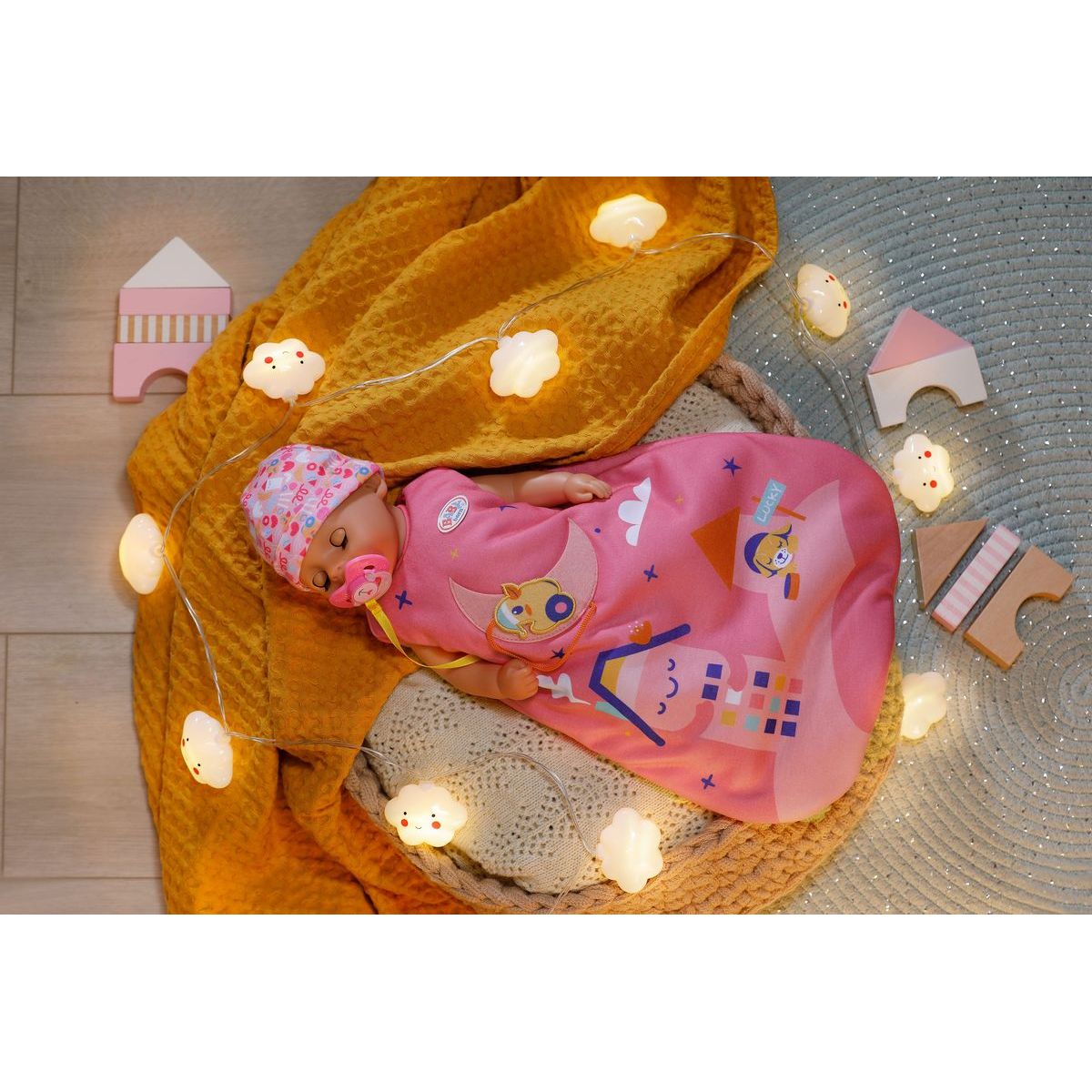 Součástí designu je praktická šňůrka s postavičkou kačenky, která slouží jako interaktivní prvek při uspávání. Tento doplněk rozvíjí dětskou empatii, zodpovědnost a jemnou motoriku prostřednictvím hry na rodiče. Spací pytel je plně kompatibilní s panenkami BABY born o velikosti 36 cm a 43 cm.