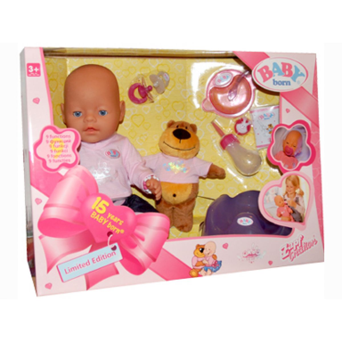 Baby Born Special edition ? oblíbená panenka v limitované sérii k 15. výročí na trhu, plyšový medvídek jako doplněk. 9 funkcí a 10 doplňků. Velikost 43 cm.