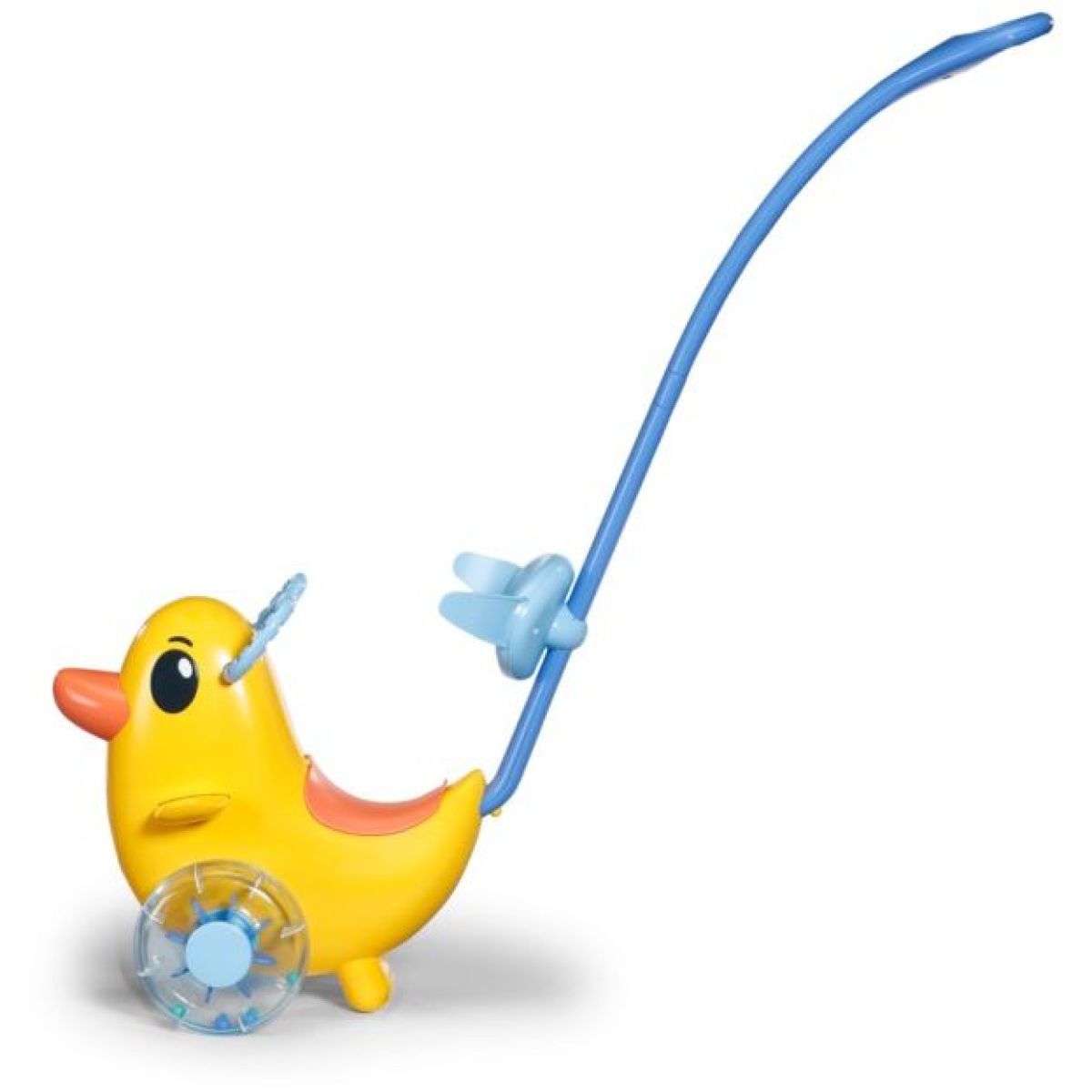 Strkadlo je vybaveno nastavitelným opěradlem a odnímatelnou vodicí tyčí, což umožňuje snadné přizpůsobení výšce dítěte.