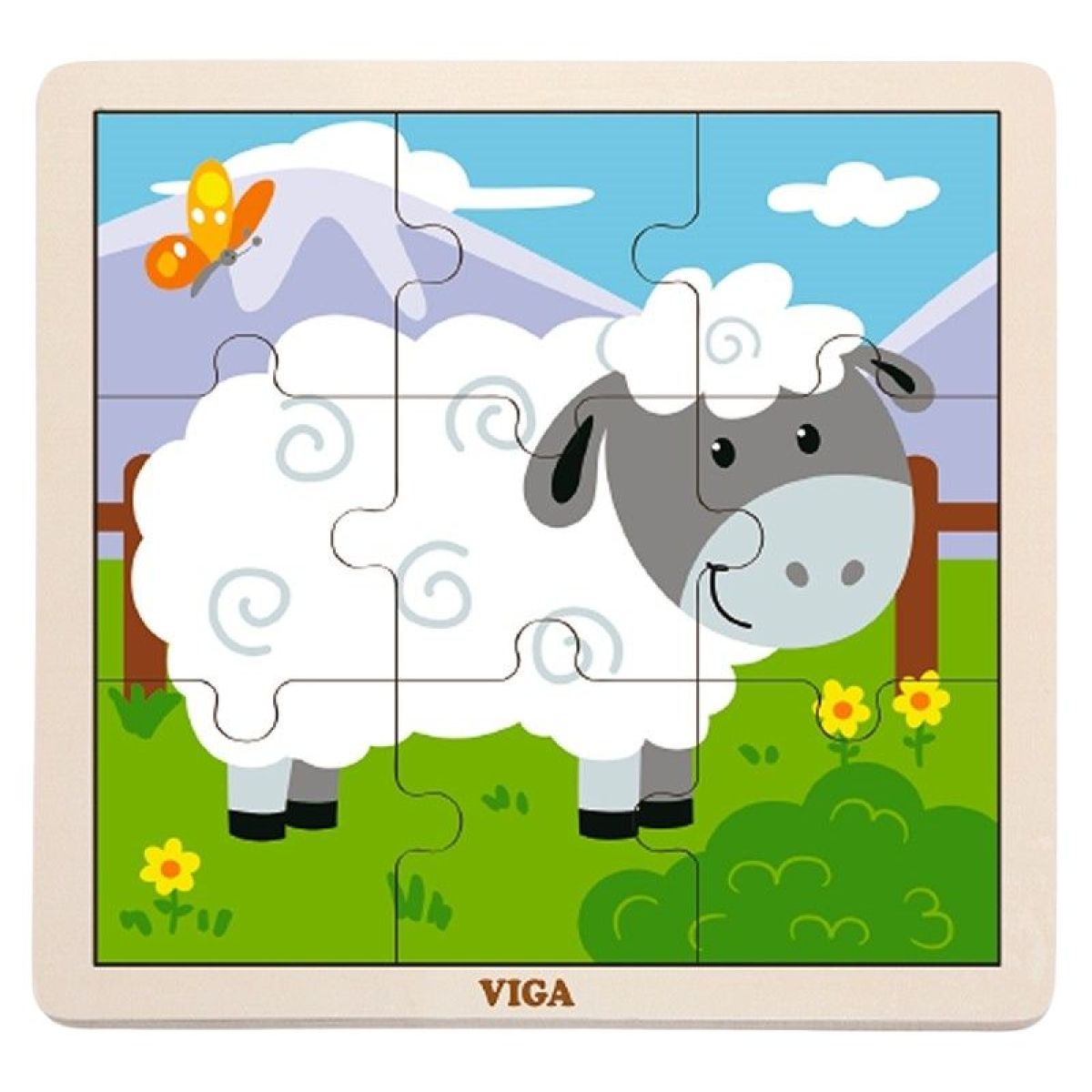 Puzzle se skládá z 9 pevných dílků, které po složení vytvoří veselý obrázek ovečky na louce. Díky jednoduchému designu, výrazným barvám a pevnému dřevěnému rámu je hračka ideální pro první skládání malých dětí.