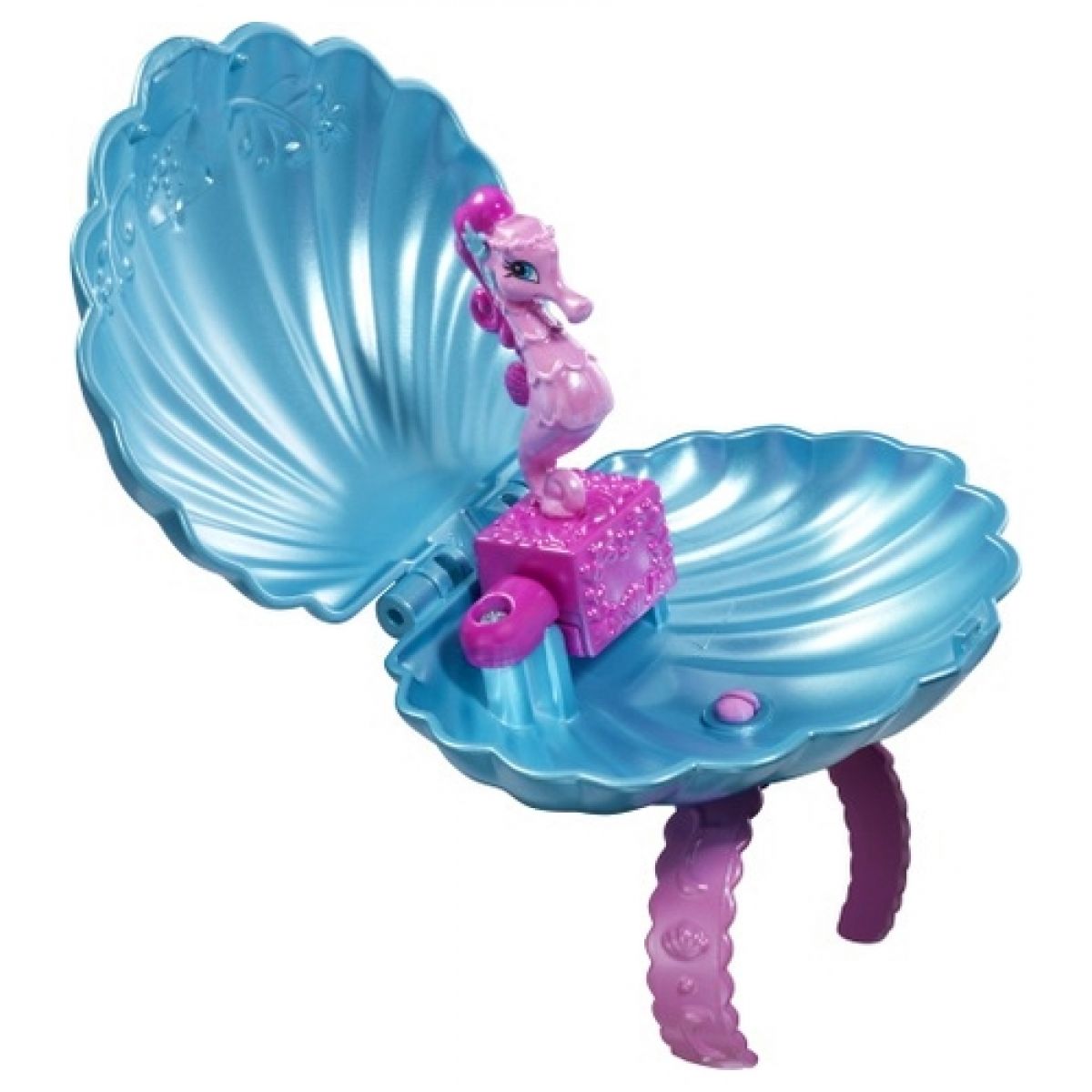 V těchto nádherných náramcích s lasturkou se skrývá podmořské tajemství! Zmáčkni mechanizmus, lasturka se otevře a objeví se postavička z nového DVD filmu Barbie Perlová princezna!