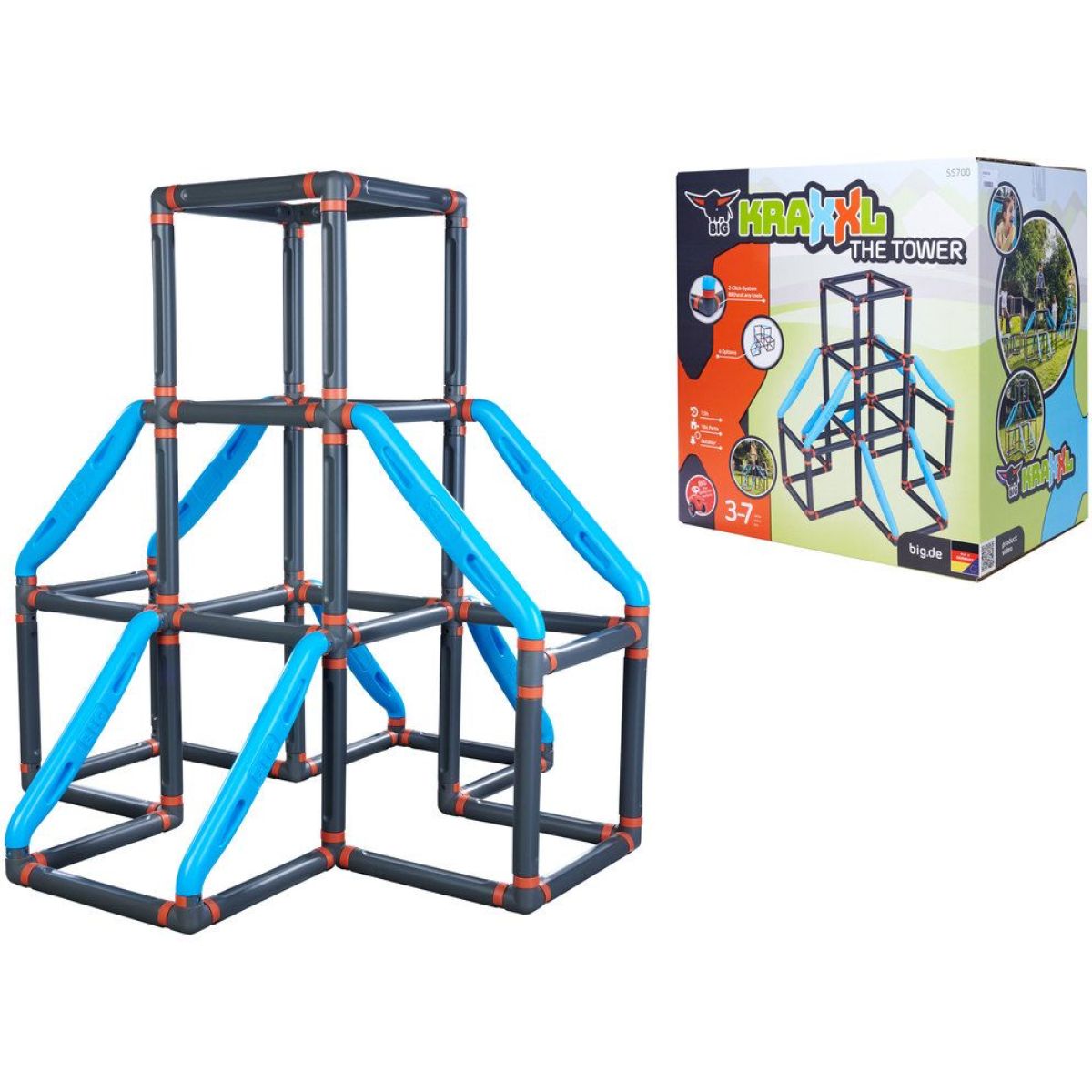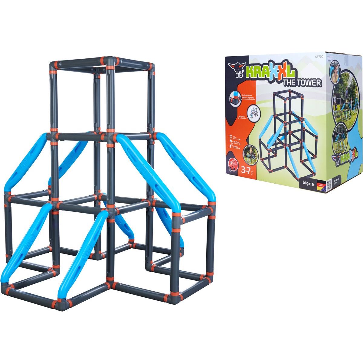 Big Kraxxl Věž představuje robustní modulární prolézačku určenou pro venkovní použití. Konstrukce je navržena s důrazem na stabilitu, bezpečnost a dlouhou životnost i při pravidelném zatížení dětmi v předškolním a mladším školním věku.
