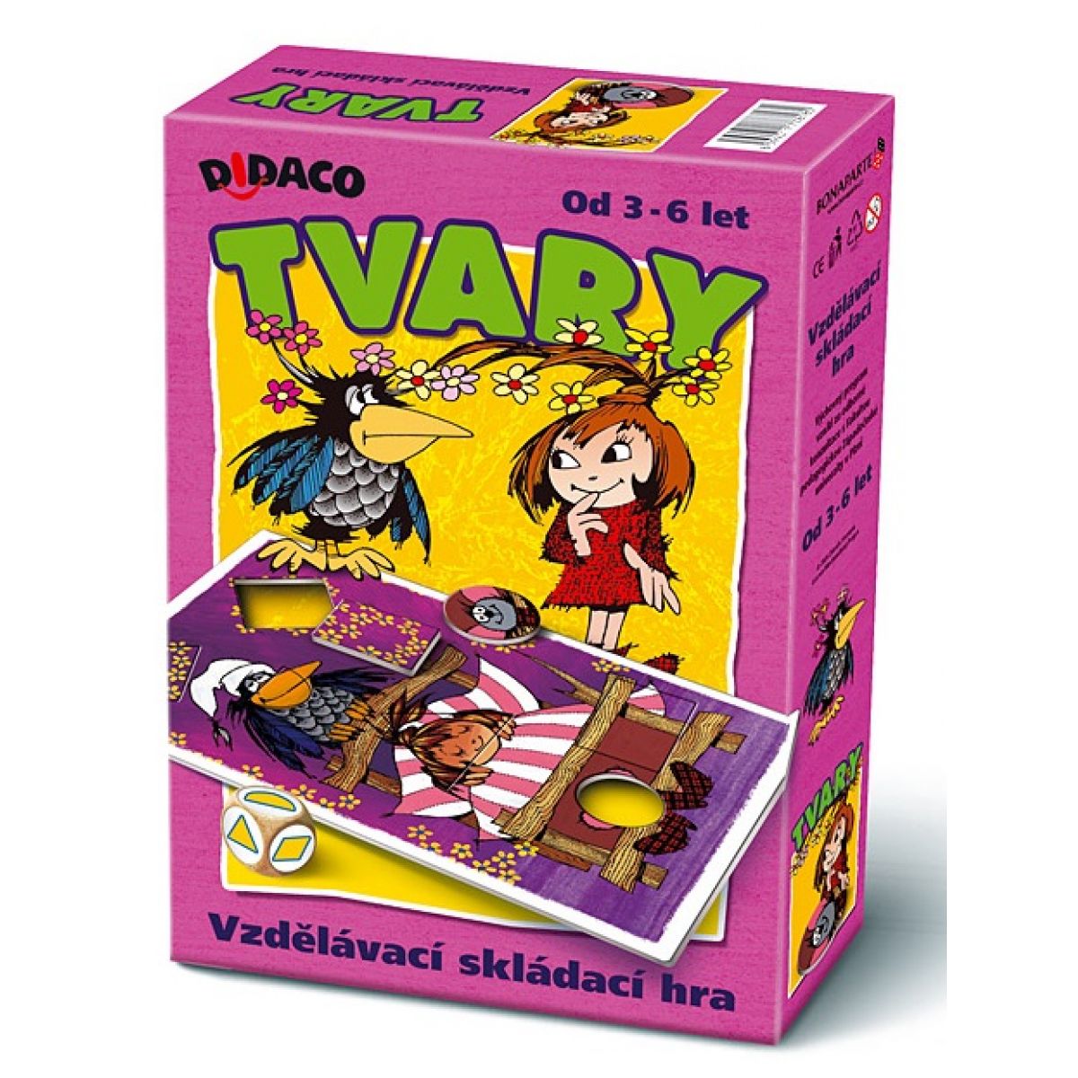 - hrací kostku s příslušnými geometrickými tvary.
