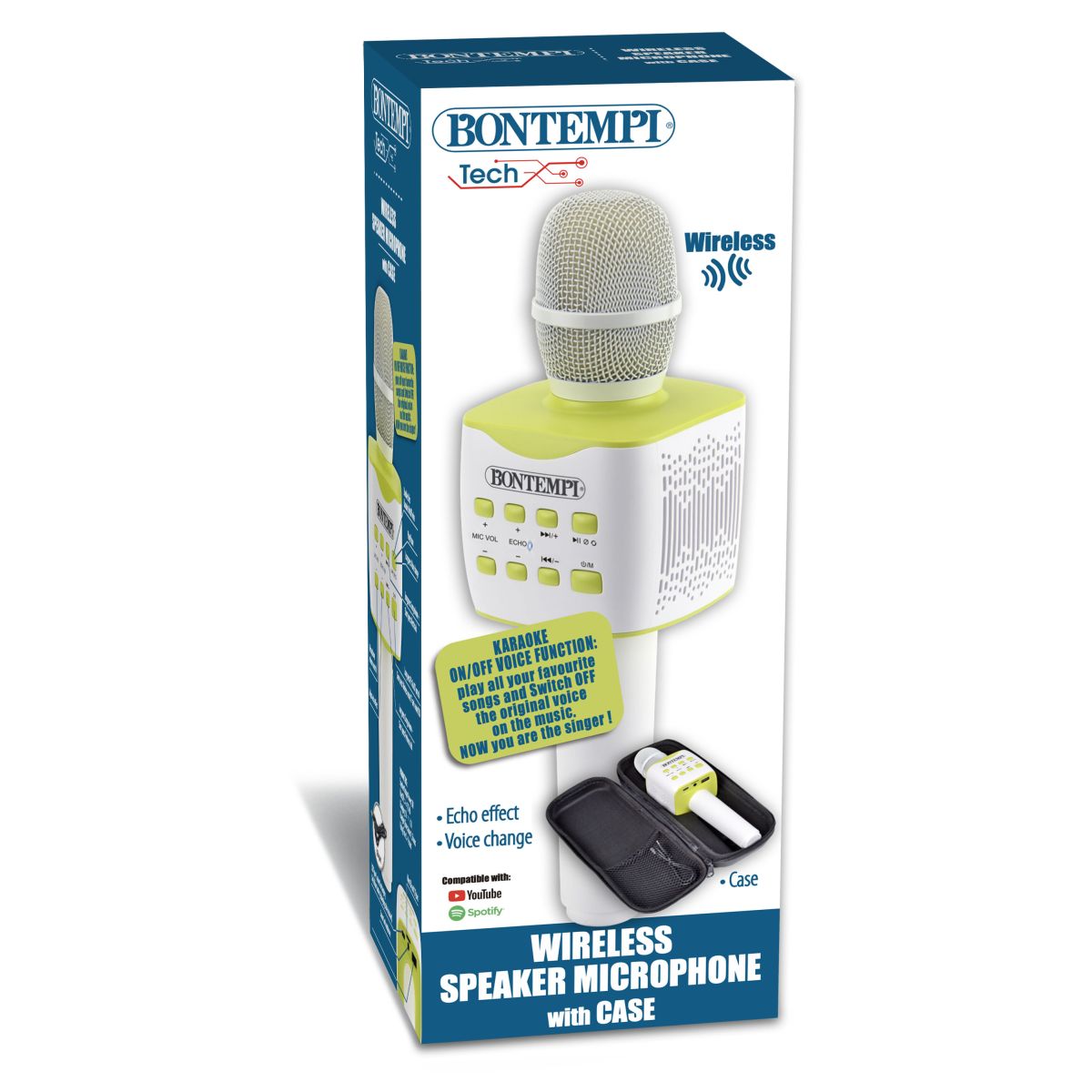 Bezdrátový mikrofon Bontempi s praktickým pouzdrem nabízí profesionální kvalitu zvuku a pohodlí při použití. Užijte si karaoke, prezentace nebo zábavu s přáteli bez omezení díky jednoduchému bezdrátovému připojení, které vám zajistí plnou volnost pohybu. Mikrofon je vybaven efektem měniče hlasu, ovládáním hlasitosti a ozvěny, což umožňuje upravit zvuk přesně podle vašich představ. Součástí balení je lithiová baterie typu CR1216, takže můžete začít ihned po vybalení. Díky odolnému ochrannému pouzdru je přenášení i skladování snadné a bezpečné. Ideální volba pro domácí i venkovní použití – ať už chcete zazářit na party nebo předvést své schopnosti na veřejnosti.
