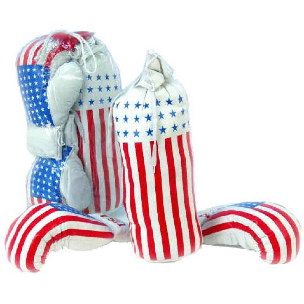 Sada boxovacího pytle s rukavicemi, baleno v sáčku.