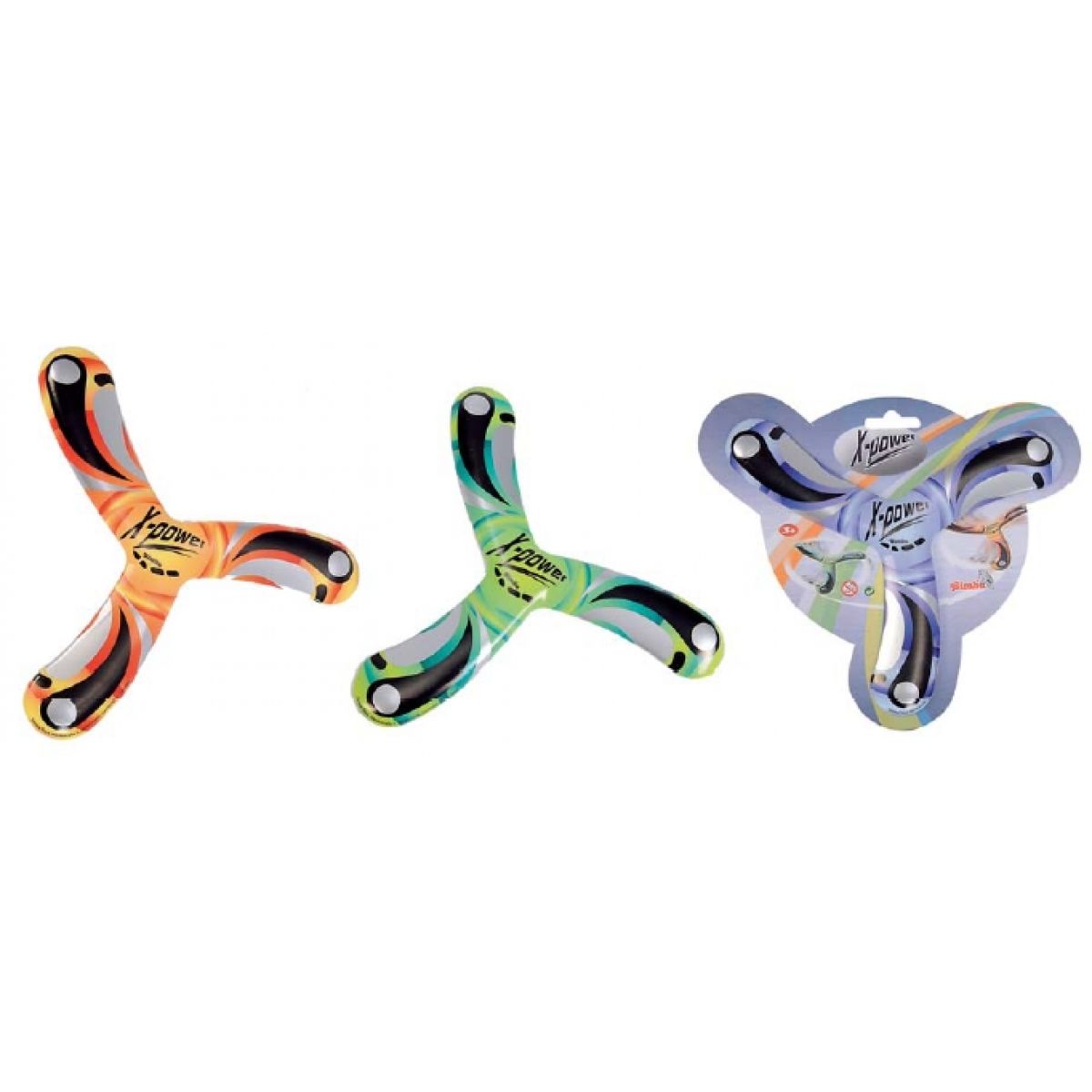 Měkký bumerank. Deformací listů lze nastavit radius letu.