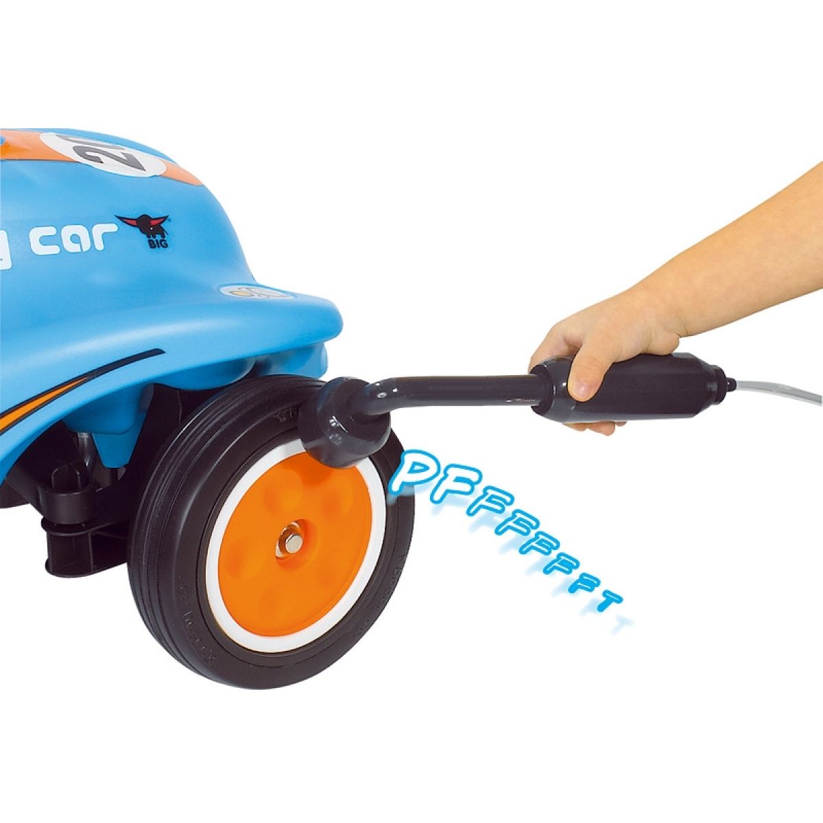 Před jízdou mohou děti zkontrolovat tlak v kolech pomocí manometru, který vydává zvuk.