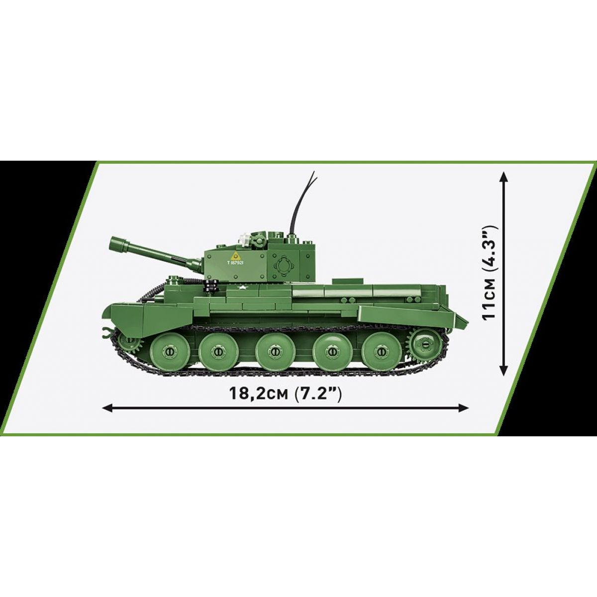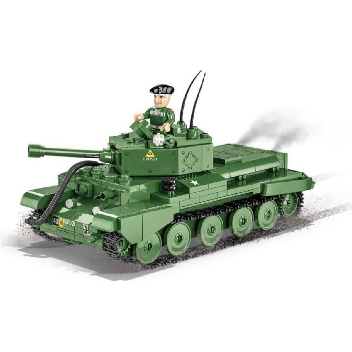 Stavebnice modelu britského tanku CROMWELL Mk.IV v tradiční army kamufláži.