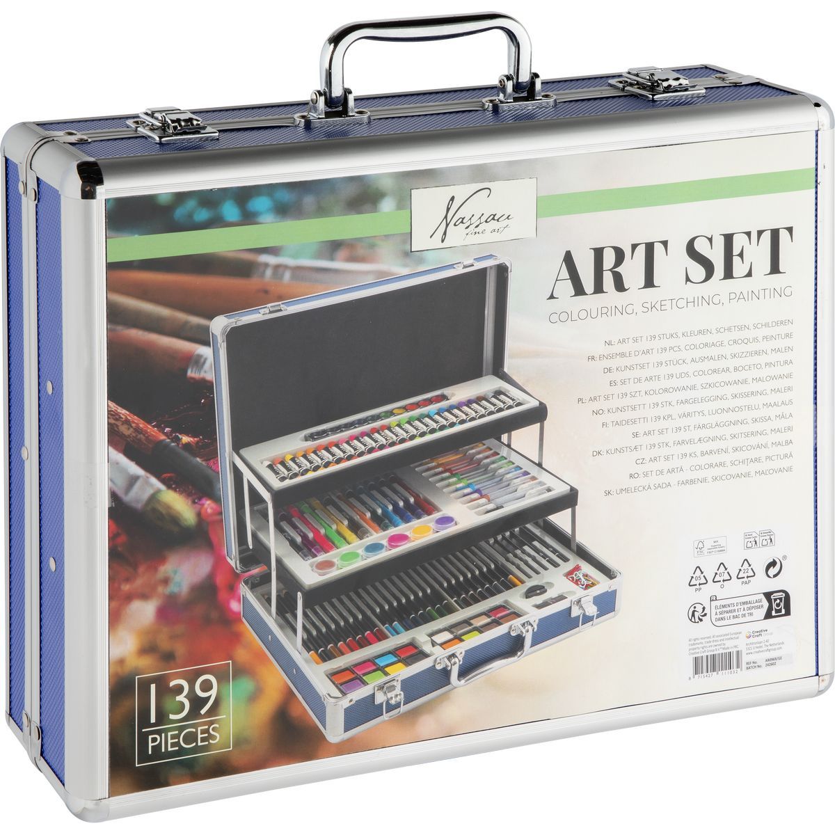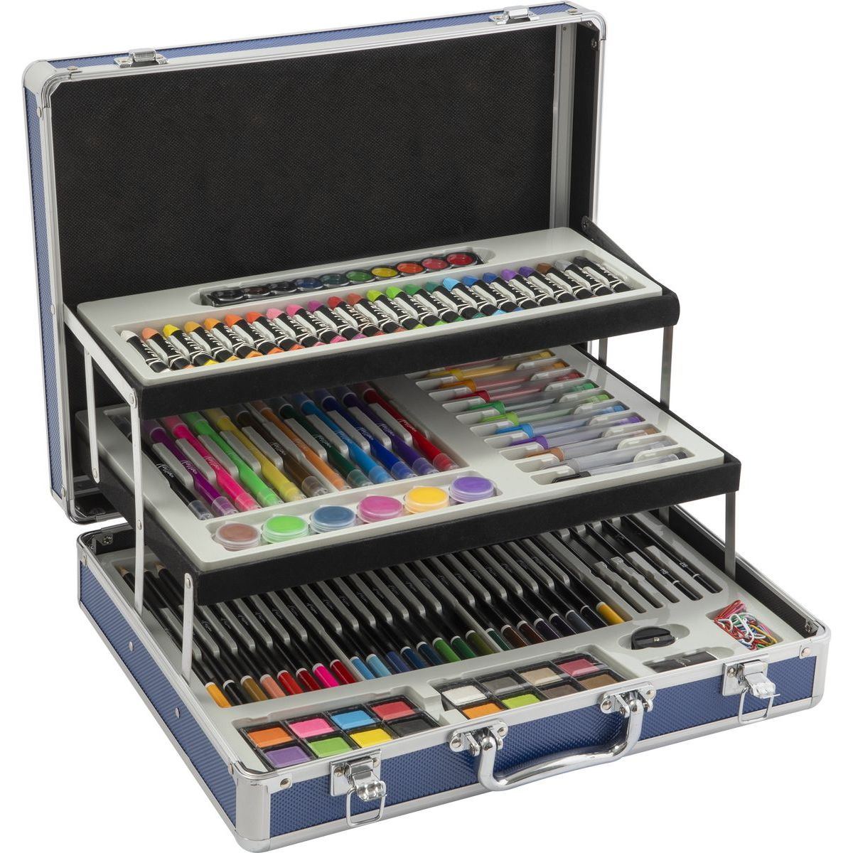 Profesionálně sestavená výtvarná sada v robustním kovovém rozkládacím kufříku nabízí kompletní vybavení pro malování a kreslení.