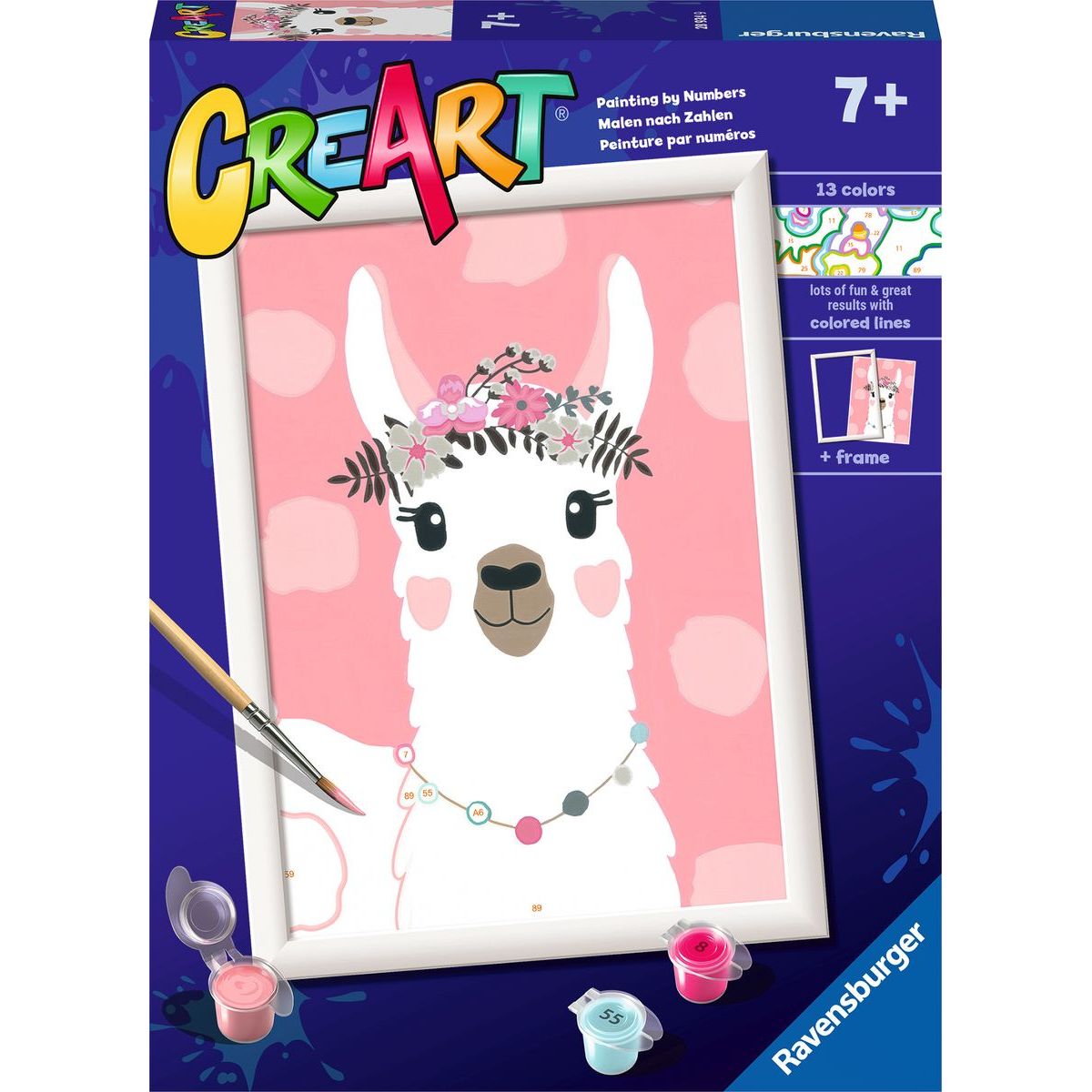 CreArt 28934 Lama, žádné drama je kreativní malovací sada určená pro děti, které chtějí rozvíjet svou jemnou motoriku, trpělivost a cit pro barvy. Přehledně připravené předlohy umožňují přesné vybarvování podle čísel, což vede k jistému a atraktivnímu výsledku vhodnému k vystavení. Motiv roztomilé lamy podporuje zájem o tvoření a poskytuje ideální vstup do světa kreativních aktivit.