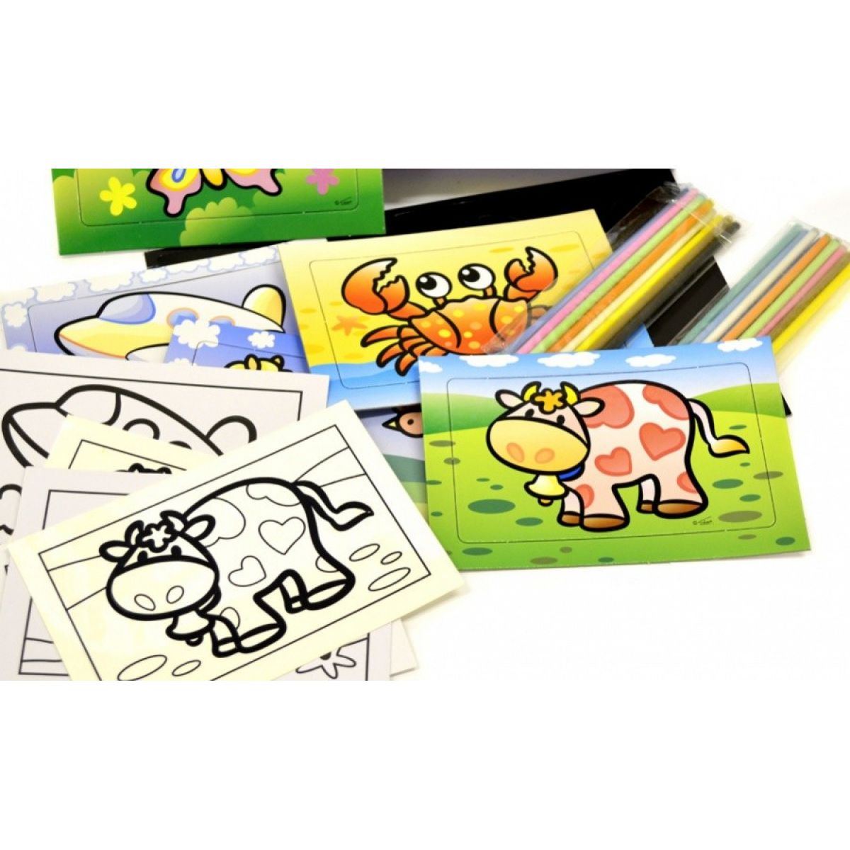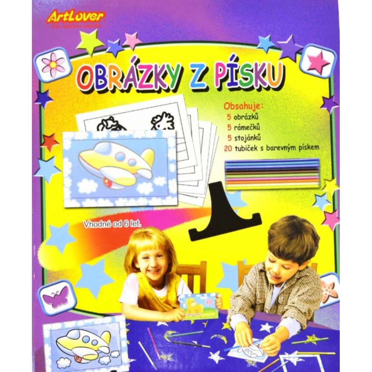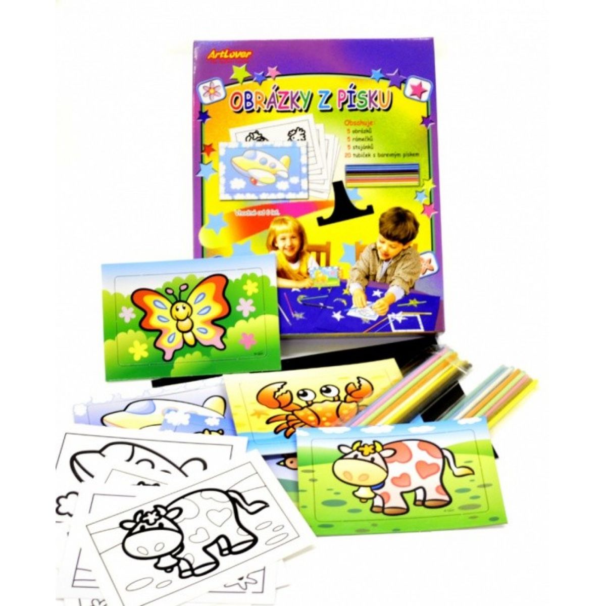 Obsah balení: 5 obrázků se stojánky a rámečky, 20 tubiček s barevným pískem.