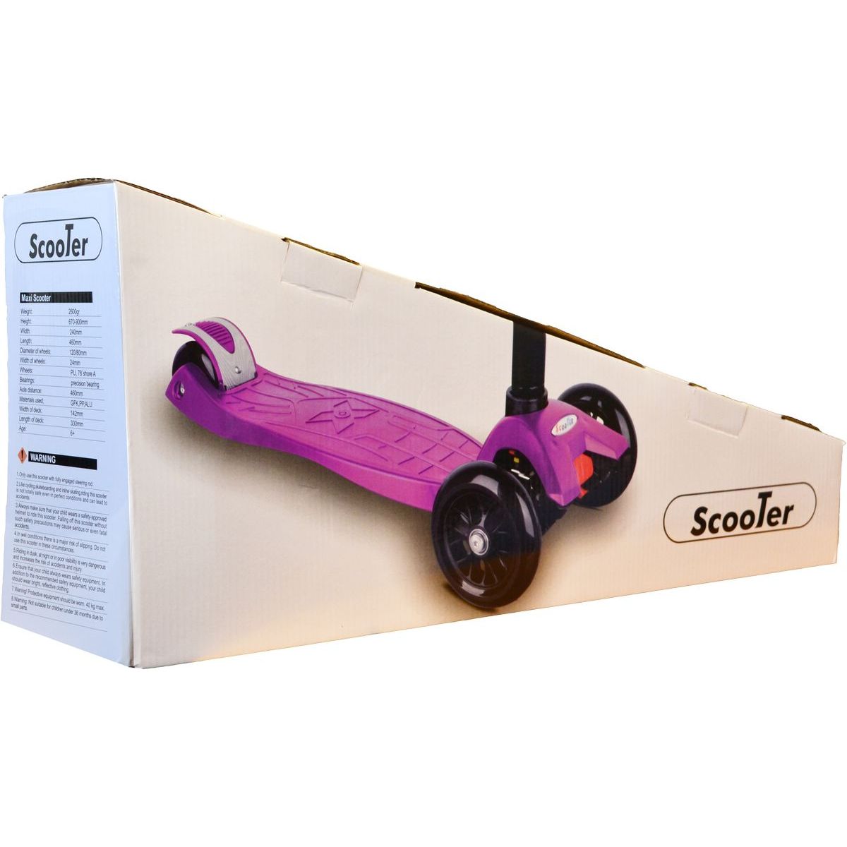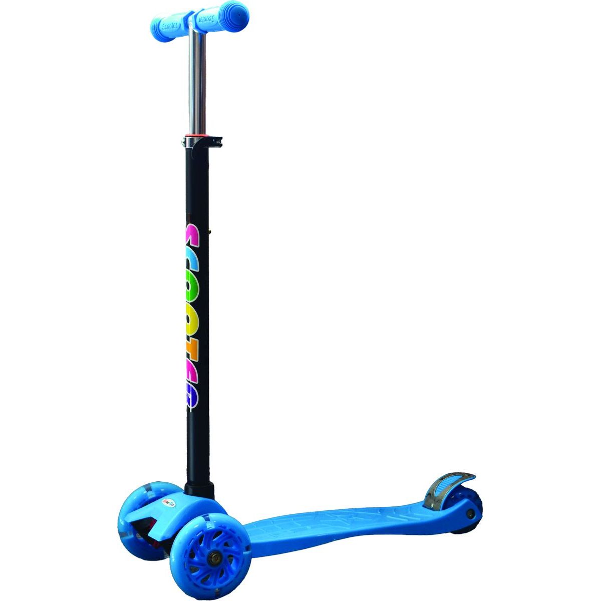 Bezpečná a stabilní dětská tříkolová koloběžka s integrovanými LED světly v kolech pro zvýšenou viditelnost.