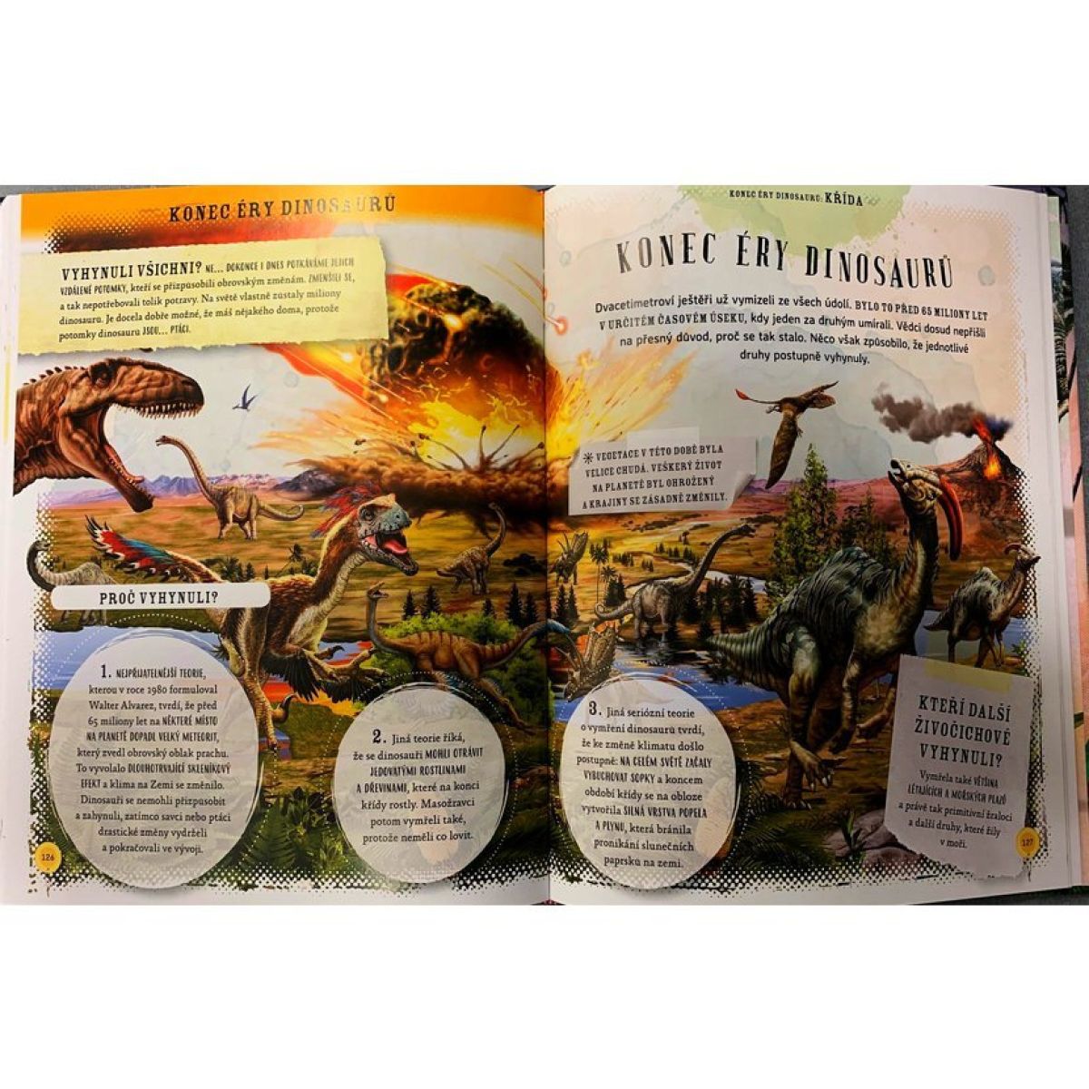 "Dinosauři – Vládci světa" je luxusní ilustrovaná kniha určená pro děti od 6 let, která nabízí fascinující pohled do prehistorického světa dinosaurů. Čtenáři zde objeví rozmanité druhy dinosaurů od býložravých sauropodů až po predátory jako tyranosaurus či velociraptor, včetně létajících pterosaurů a mořských ichthyosaurů. Kniha obsahuje podrobné tabulky pro snadnou představu o skutečné velikosti jednotlivých druhů a umožňuje dětem pochopit historii Země a život v době, kdy dinosauři dominovali. Vázaná vazba a kvalitní ilustrace zajišťují trvanlivost a atraktivní vizuální zážitek.