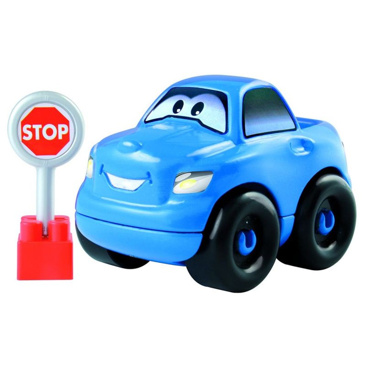 Plastové autíčko s přísl. pro nejmenší. Stavebnicový systém Abrick. Lze je rozdělit na 2 části a vzájemně kombinovat.