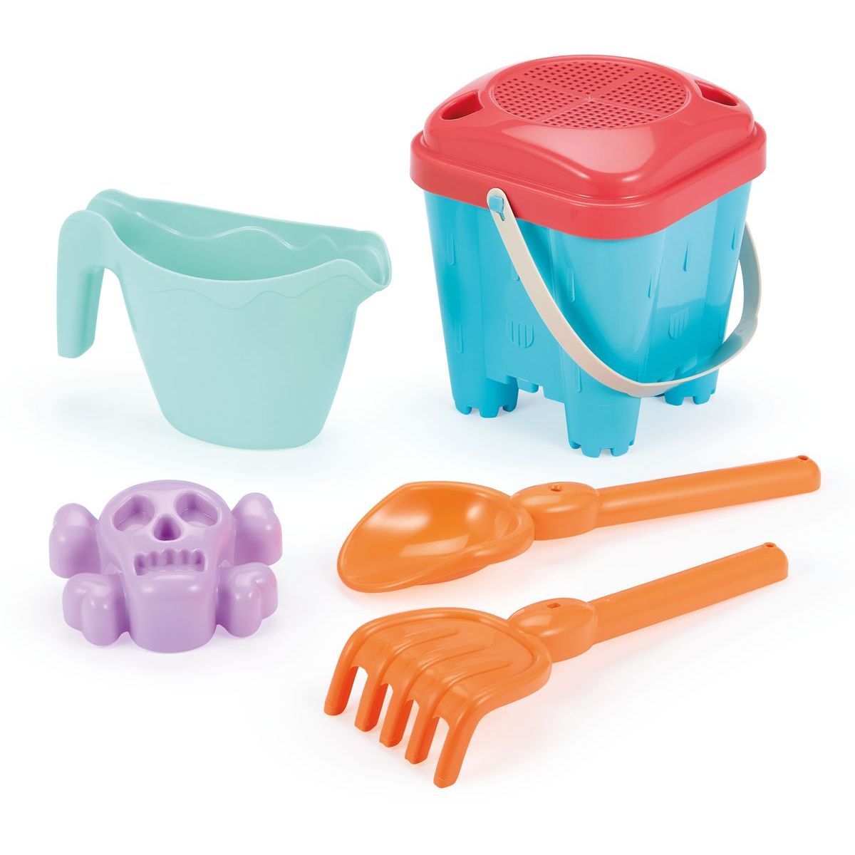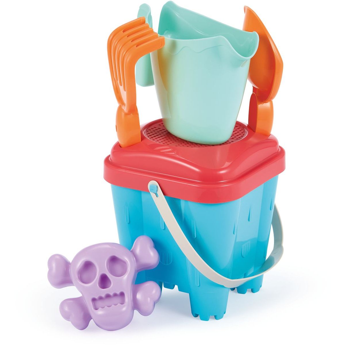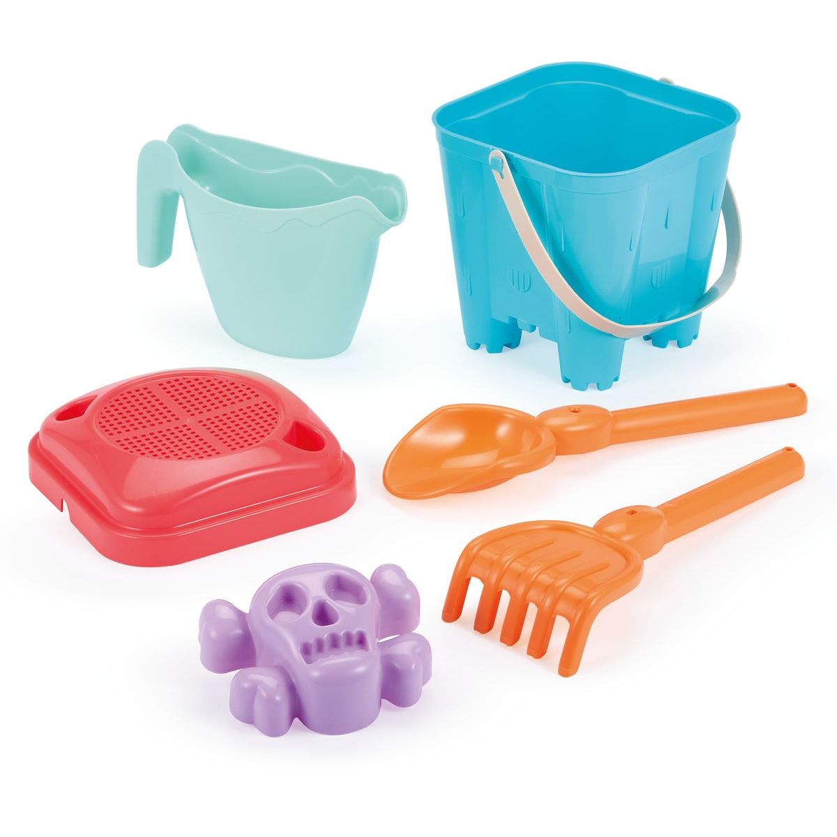 Tento kyblíček vysoký 15 cm je ideální pro stavbu impozantních hradů z písku, přičemž vám pomohou praktické doplňky jako síto, konvička, lopatka, hrabičky a originální formička ve tvaru lebky. Díky nim můžete rozvíjet dětskou fantazii a motoriku zároveň. Tento set nabízí vše potřebné k dokonalé pískové výpravě – stačí jen přidat písek a chuť tvořit!