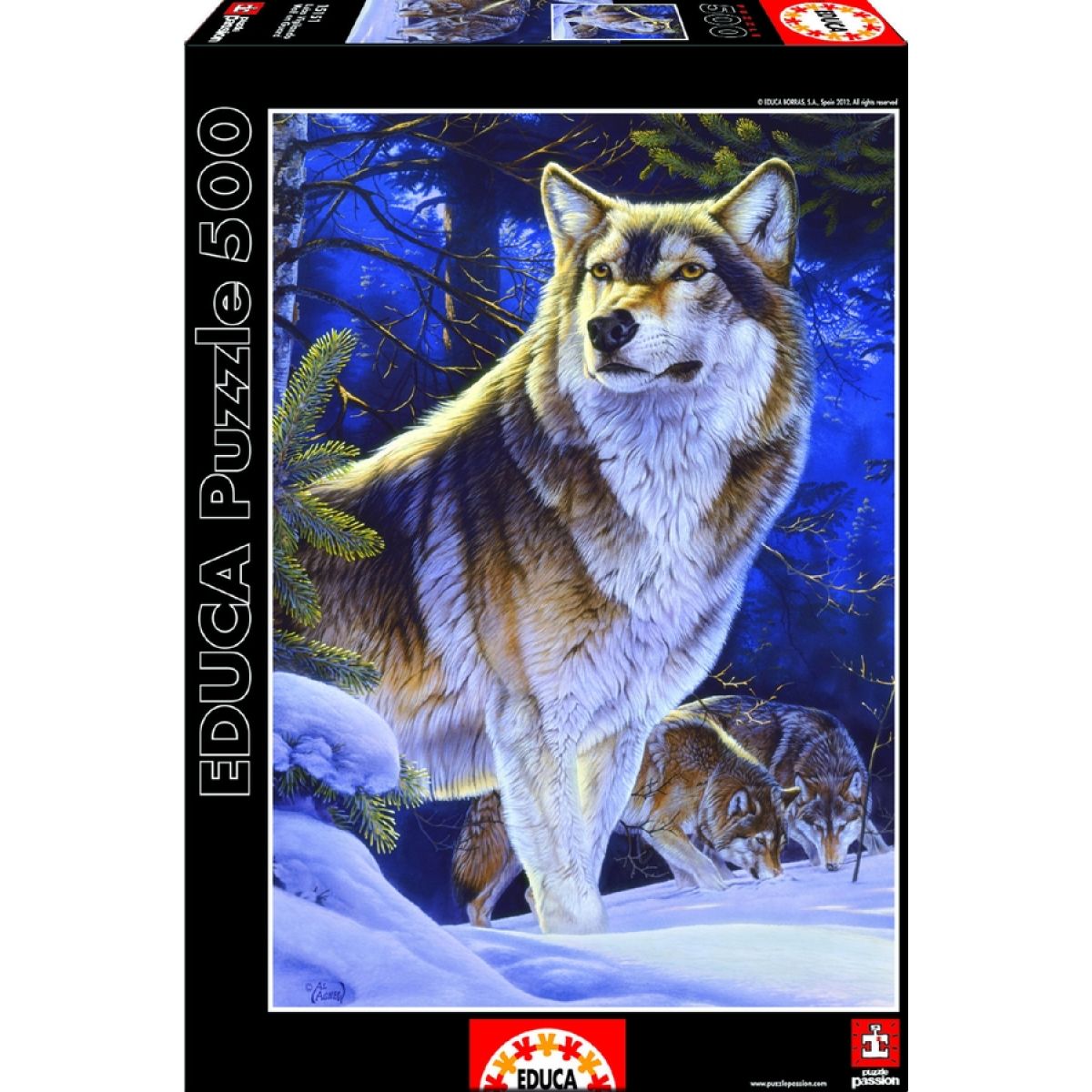 Puzzle o 500 dílcích s motivem vlka. Balení obsahuje lepidlo.