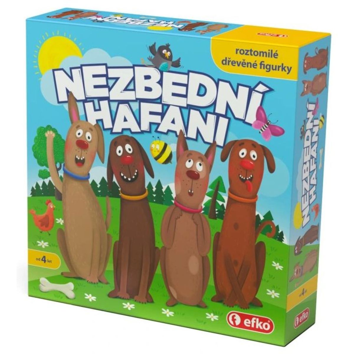 Je čas oběda a psí maminky musí zahnat svá štěňátka domů. Hra Nezbední hafani od značky Efko je jednoduchá a zábavná desková hra pro malé děti, která rozvíjí jemnou motoriku, soustředění a trpělivost.