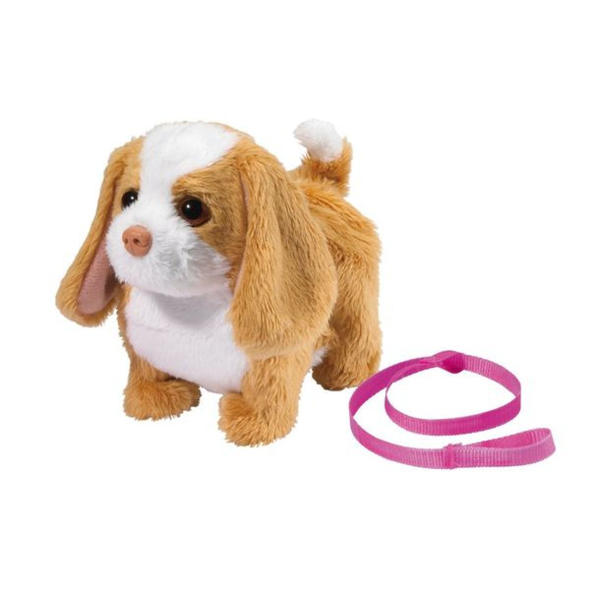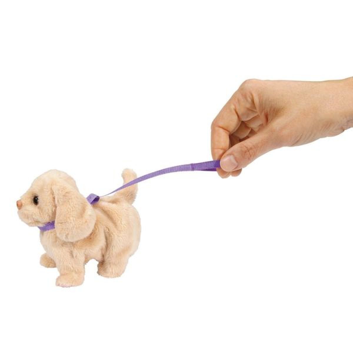 Vyražte na procházku s plyšovým štěňátkem do dlaně. Tato štěňátka po stisknutí tlačítka na zádech doopravdy chodí! Štěňátko zlatého retrívra se nemůže dočkat procházky a malý baset už se rozběhl.