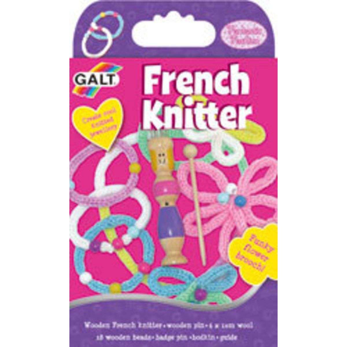 Obsah balení: pletací nástavec, dřevěná jehlice, čtyři barvy vlněné příze vždy po 10 metrech, 12 dřevěných korálků, šídlo