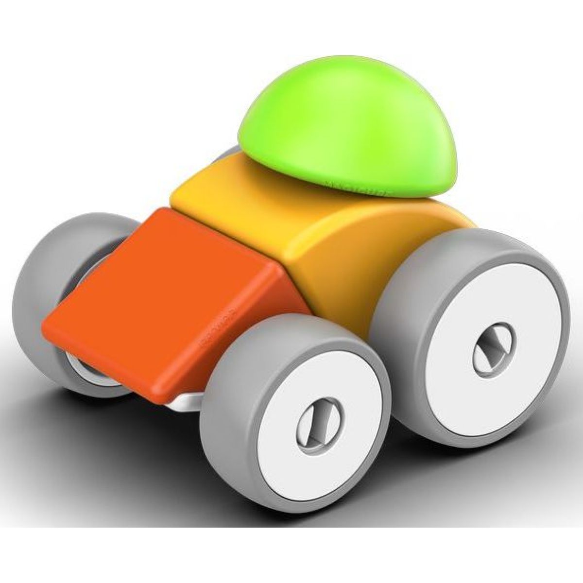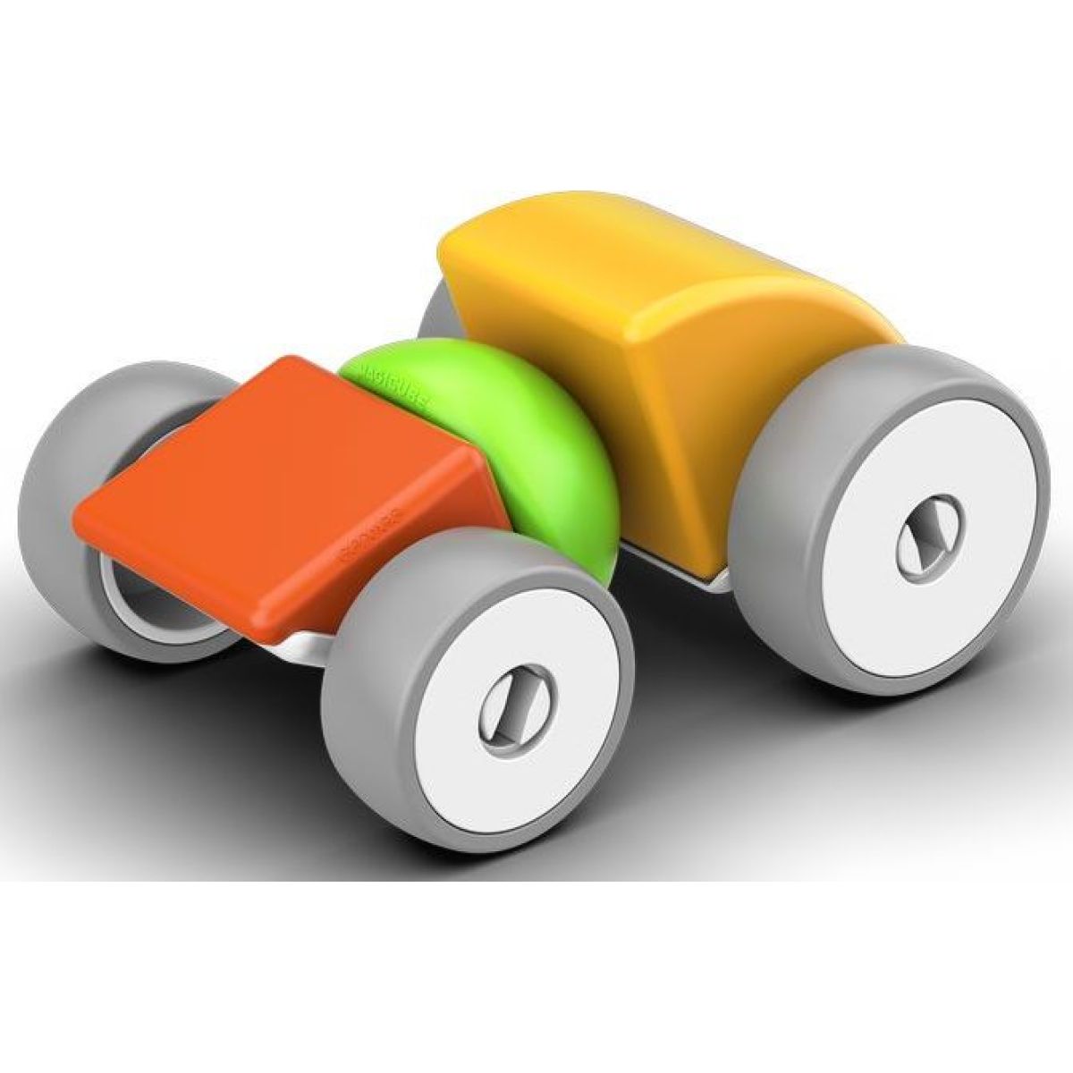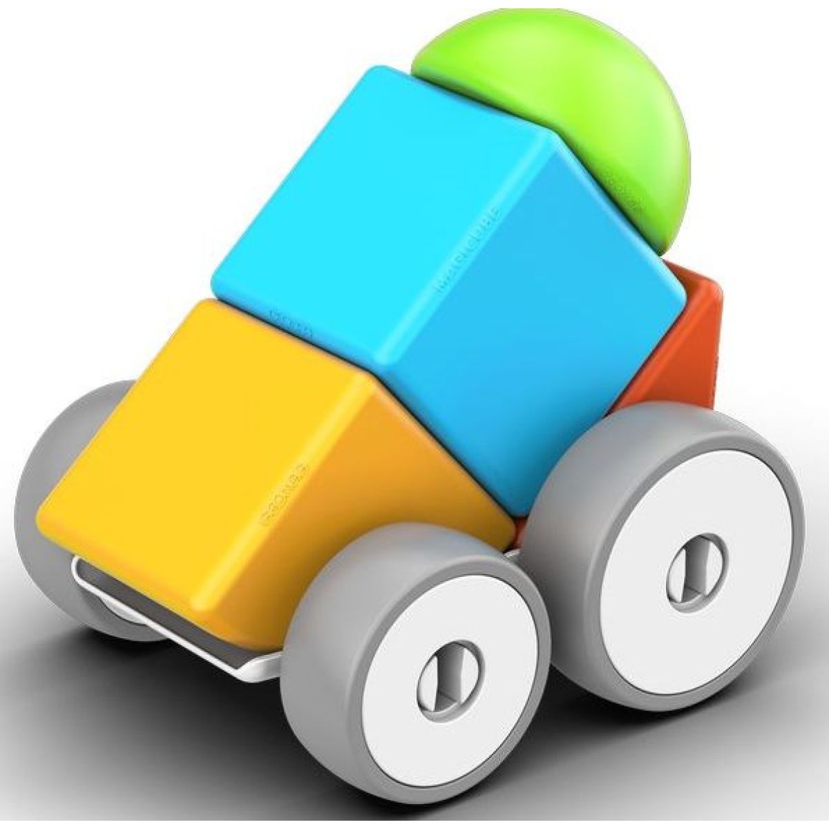 Magnetická stavebnice Geomag Magicube obsahuje 4 magnetické prvky různých tvarů a barev a 4 kolečka se dvěma podvozky. Ideální i pro malé děti již od 1 roku. Vyrobeno ve Švýcarsku, z recyklovaného plastu.
