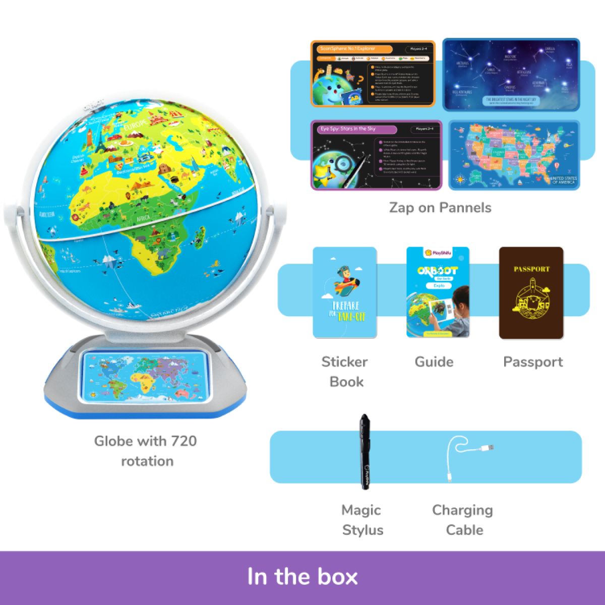 Objevte svět zábavy a poznání s interaktivním Glóbusem Naše Země - Průzkumníkem. Tento glóbus nabízí více než 400 zajímavostí a přes 1000 faktů rozdělených do šesti kategorií, jako jsou kultura, kuchyně, památky, vynálezy, zvířata a mapy. Díky možnosti propojení s vaším zařízením a aplikací se můžete vydat na fascinující cestu po světě přímo z pohodlí domova. V balení najdete glóbus, cestovní pas, knížku s nálepkami, vyměnitelné panely a razítko. Hračka je vybavena nevyměnitelnou dobíjecí Li-ion baterií, která zajišťuje dlouhou výdrž. Doporučený věk od 4 let, ideální pro malé průzkumníky a milovníky poznávání.